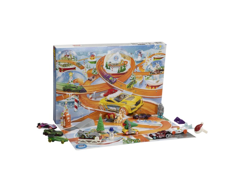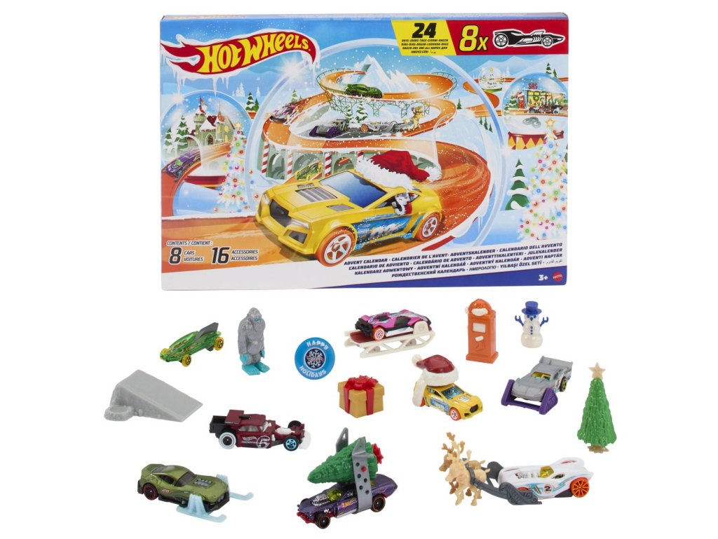 Rozjeďte to s tímto svátečním adventním kalendářem od Hot Wheels®! Za každým z 24 okýnek se skrývá prázdninové překvapení - vozidlo nebo doplněk. Sada obsahuje osm aut Hot Wheels® v měřítku 1:64 a 16 doplňků. Samotný obal je součástí zábavy s připojenou podložkou na hraní.