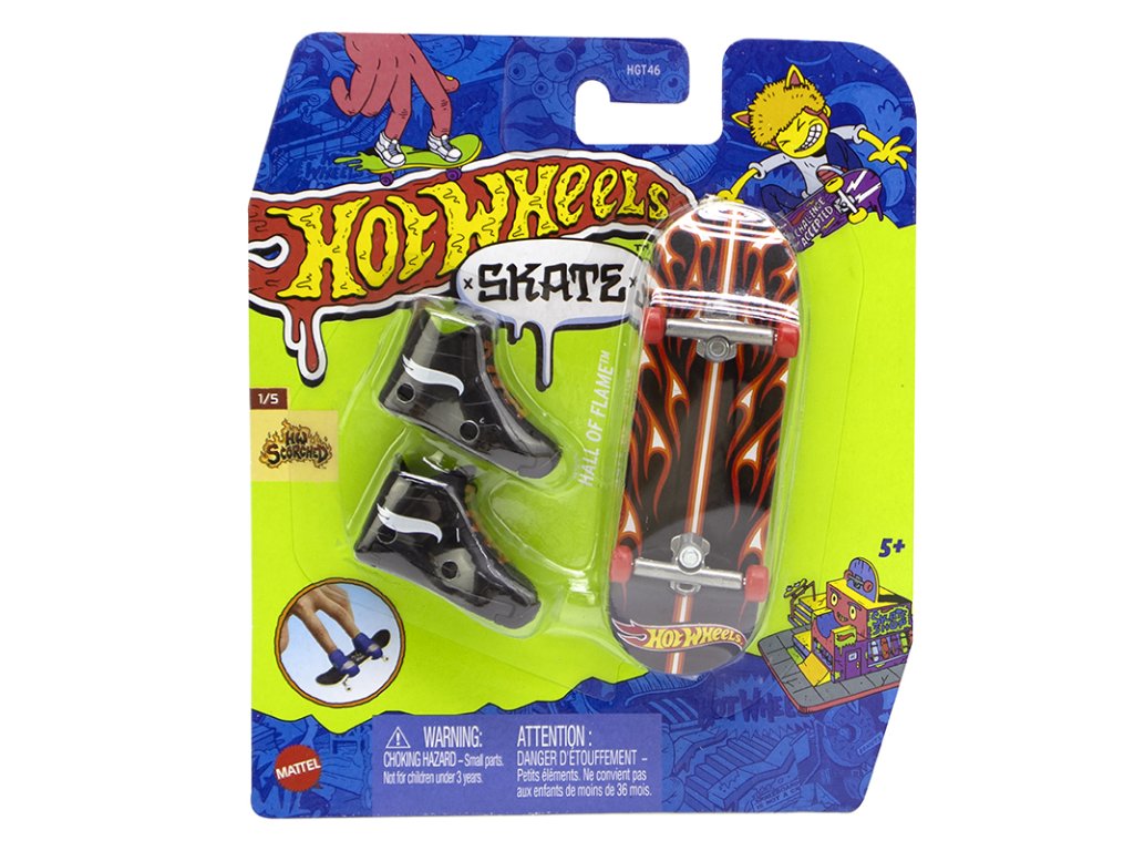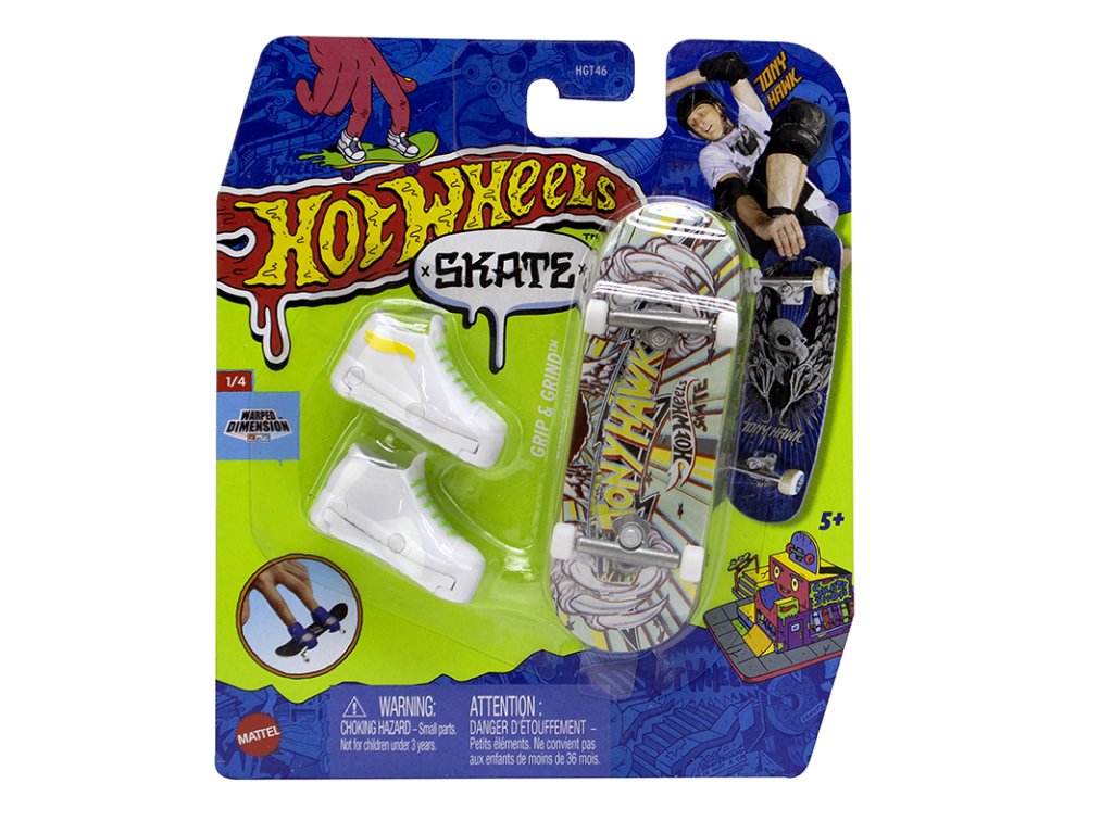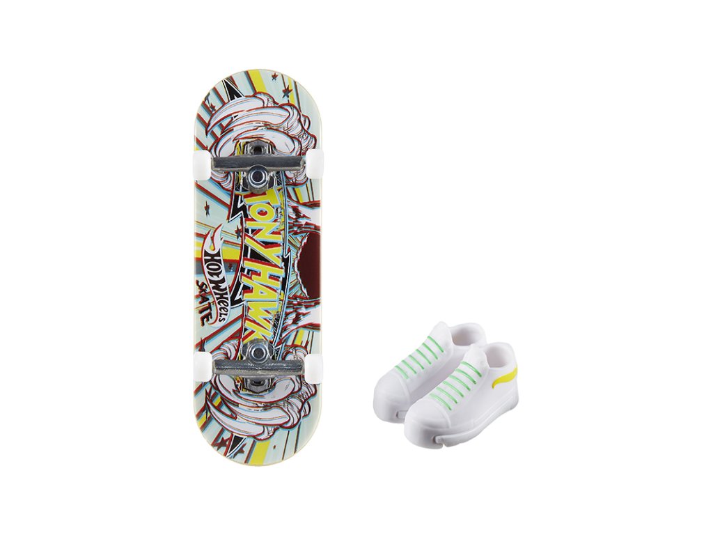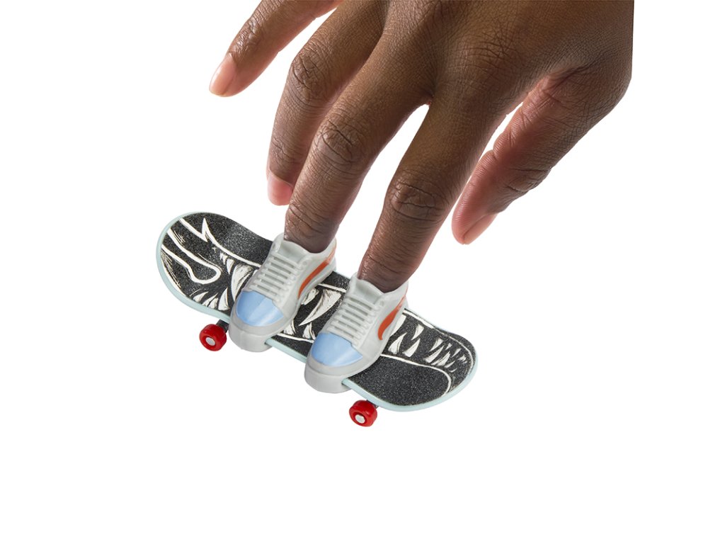 Vrhni se do akce s touto skvělou novinkou Fingerboard a boty od Hot Wheels®. Hot Wheels® a legenda skateboardingu Tony Hawk se spojili, aby vytvořili epickou kolekci fingerboardů, která je jako stvořená pro skvělé kaskadérské kousky a špičkové pohyby. Každý kompletně sestavený fingerboard Hot Wheels® je dodáván s párem stylových, odnímatelných skate bot, které jsou navrženy tak, aby udržely konečky prstů na místě, když se učíte shredovat a dělat ollie jako profesionál. Každý fingerboard má jedinečný a cool design, že je děti budou chtít sesbírat všechny. Každý se prodává samostatně v závislosti na dostupnosti. Barvy a provedení se mohou lišit.