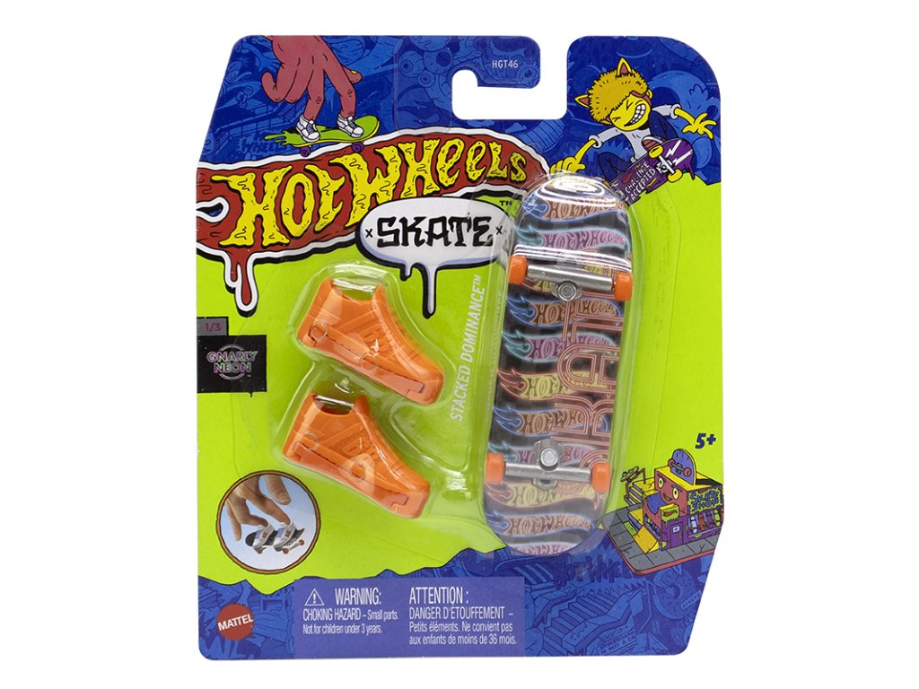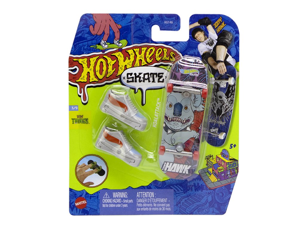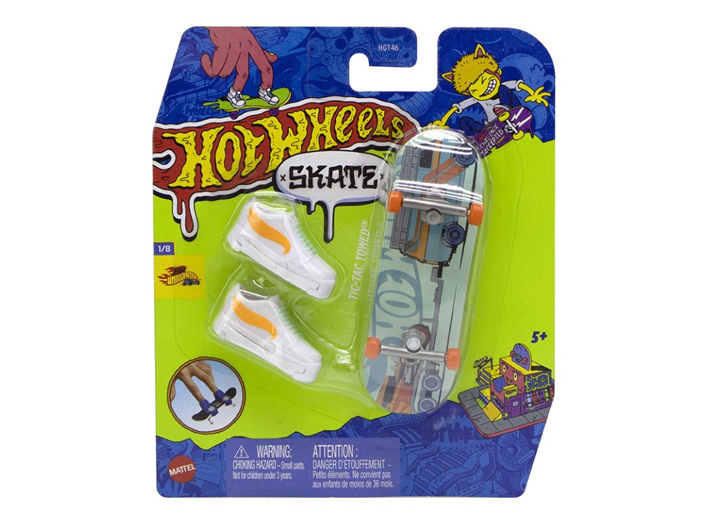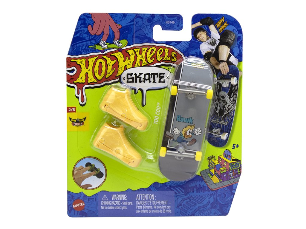 Vrhni se do akce s touto skvělou novinkou Fingerboard a boty od Hot Wheels®. Hot Wheels® a legenda skateboardingu Tony Hawk se spojili, aby vytvořili epickou kolekci fingerboardů, která je jako stvořená pro skvělé kaskadérské kousky a špičkové pohyby. Každý kompletně sestavený fingerboard Hot Wheels® je dodáván s párem stylových, odnímatelných skate bot, které jsou navrženy tak, aby udržely konečky prstů na místě, když se učíte shredovat a dělat ollie jako profesionál. Každý fingerboard má jedinečný a cool design, že je děti budou chtít sesbírat všechny. Každý se prodává samostatně v závislosti na dostupnosti. Barvy a provedení se mohou lišit.