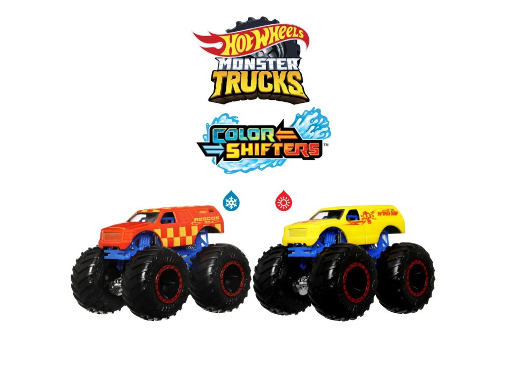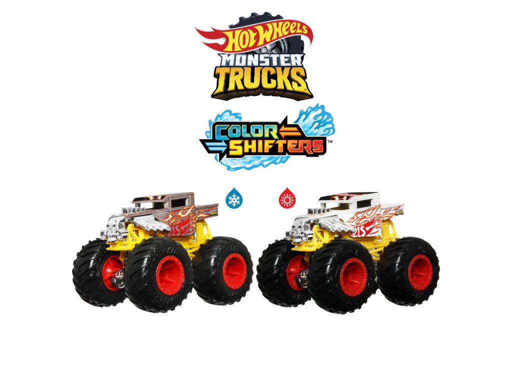 Trucky Hot Wheels® Monster Trucks Color Shifters™ přinášejí bourání s bonusem dvou dekorů na jednom trucku! Jednoduše ponořte truck Color Shifters™ do ledové vody, aby se zázračně změnil jeho původní vzhled, a pak ho zase změňte ponořením do teplé vody. Postup opakujte stále dokola a střídejte jednotlivé vzory. K dispozici je tolik úžasných modelů Color Shifters™ Monster Trucks, že je děti budou chtít sbírat všechny. Každý se prodává samostatně, podle dostupnosti. Barvy a provedení se mohou lišit.