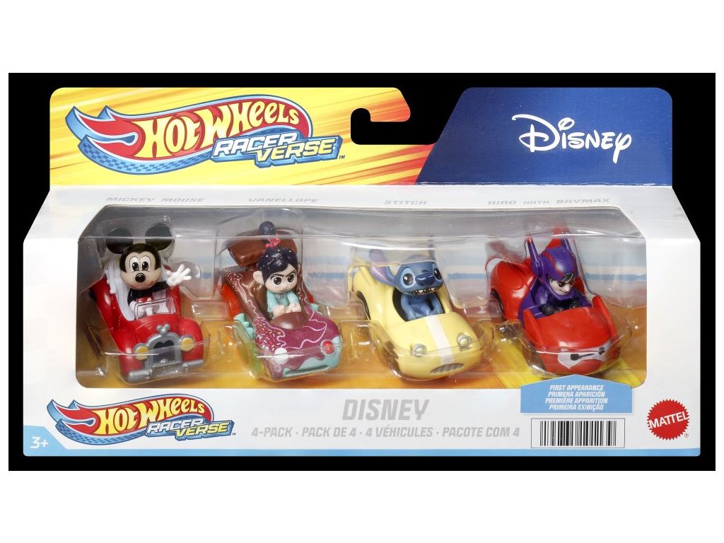 Sady 4ks autíček Hot Wheels® Racerverse jsou určené pro fanoušky popkultury, kteří milují filmy a Hot Wheels®. Autíčka Racerverse jsou v měřítku 1:64 a jsou navržena pro úžasný výkon na závodní dráze! Za volantem těchto stylizovaných aut vždy sedí oblíbená postavička z legendárních zábavných a akčních filmů. Každá sada se prodává samostatně v závislosti na dostupnosti. Barvy a vzhled výrobku se mohou lišit.