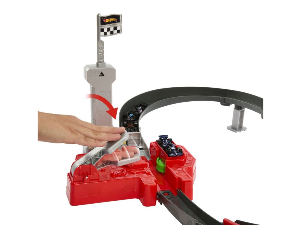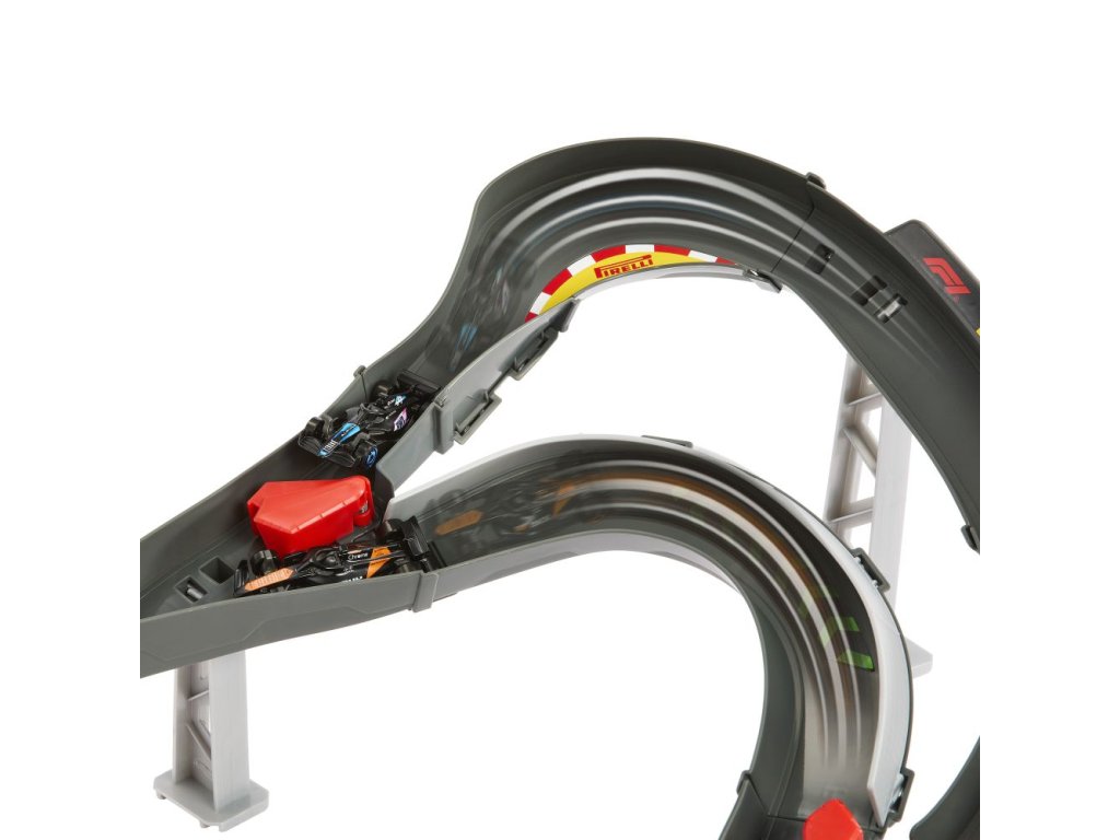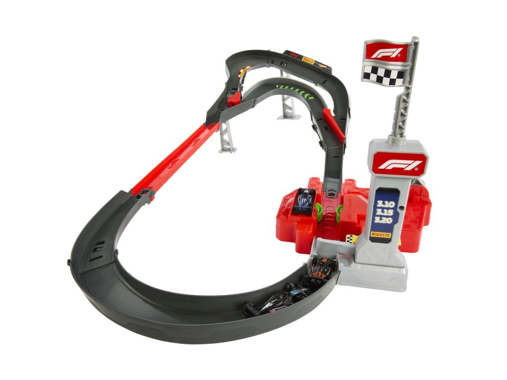 Zažijte adrenalin závodů Formule 1 přímo u vás doma díky dráze Hot Wheels Racing Startovací dráha. Tento set přináší tři detailně zpracované angličáky v měřítku 1:64, inspirované oblíbenými týmy – McLaren Formule 1, BWT Alpine Formule 1 a Visa Cash App RB Formule 1 – a dvě herní varianty, které zaručují napínavou akci. V závodním režimu stačí naložit auta do startovací rampy a sledovat auta řítící se na trať. V nekonečném režimu auta obíhají dráhu znovu a znovu bez zastavení – ideální pro vytrvalé závodníky. Dráha je navržena tak, aby byla kompatibilní se systémem Speed Snap, což umožňuje její snadné rozšíření o další části. (Další sety a dráhy Hot Wheels se prodávají samostatně.) Barvy a vzhled výrobku se mohou lišit.