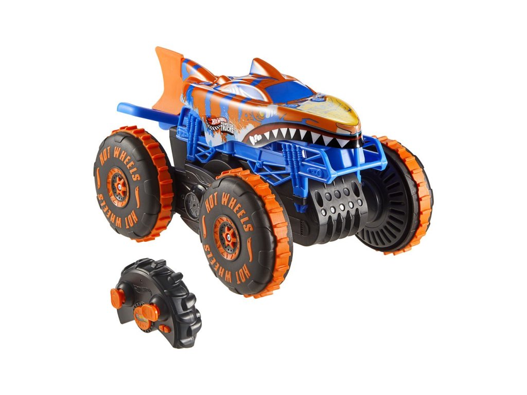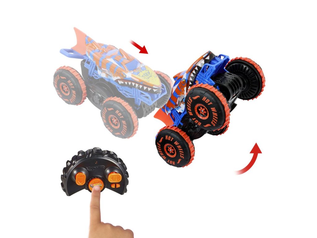 Hot Wheels Monster Truck lezec Tiger Shark RC je připravený drtit, bourat a šplhat! Díky schopnosti jízdy v různém terénu a inovativnímu ocasu, který pomáhá tomuto dravci překonávat překážky i soupeře, zvládne opravdu hodně. Ve speeder módu se díky pneumatikám Grip Action hravě prožene různými povrchy. V climber módu se ocas prodlouží a Tiger Shark zvládne vyšplhat přes překážky jako šampion. Stačí stisknout tlačítko na ovladači a auto se roztočí do bláznivé akce, při které předvede svou rychlost i styl. Barvy a vzhled výrobku se mohou lišit.