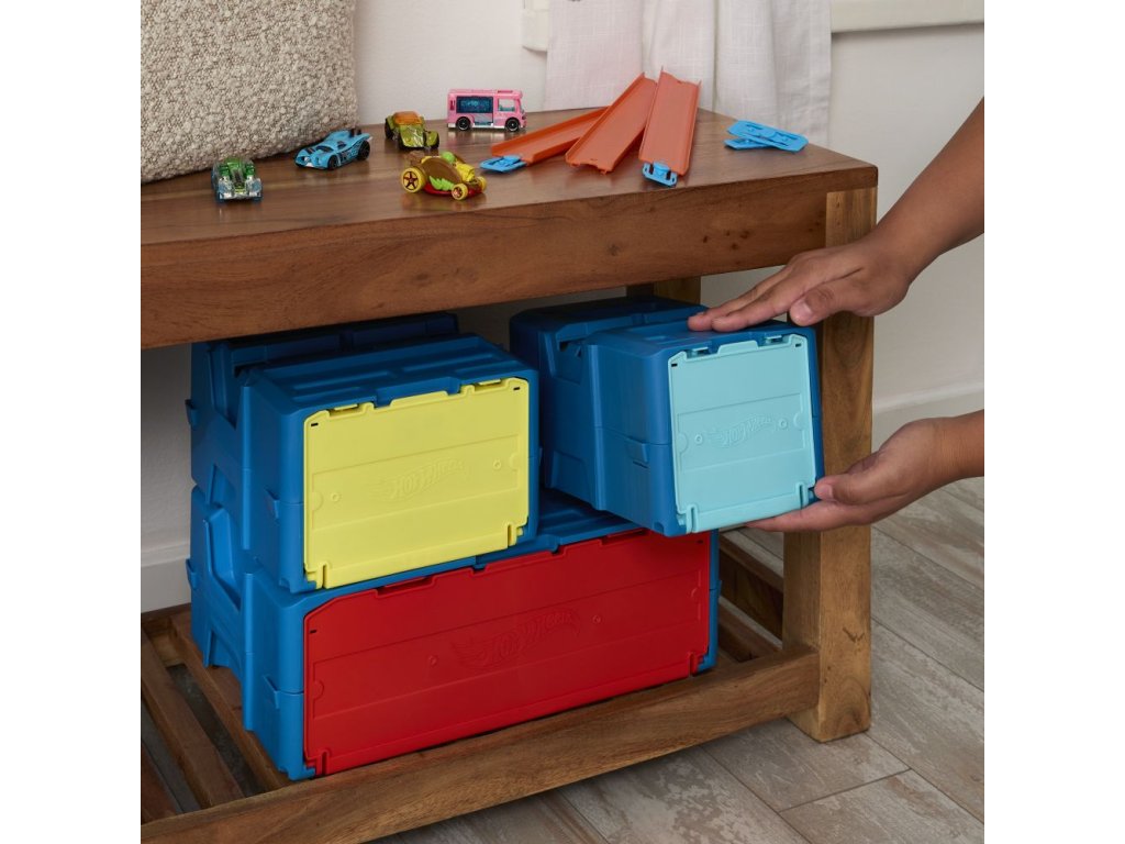 Sety Hot Wheels® Track Builder Dráha v boxíku poskytuje vše potřebné pro stavbu velkolepých drah v praktickém úložném boxu. Každý set obsahuje klíčové součásti dráhy, jako jsou například nakopávače, otáčející se dílky, rovné dráhy, zatáčky a vždy jeden angličák Hot Wheels®. Děti mohou do své dráhy zapojit i úložný box! Každá součást dráhy je kompatibilní s dalšími sety Hot Wheels® (prodávají se samostatně) pro nekonečné závodění. Jednotlivé sety z této kolekce se prodávají zvlášť v závislosti na dostupnosti. Barvy a vzhled výrobku se mohou lišit.