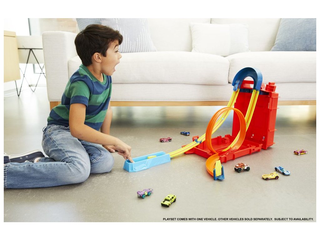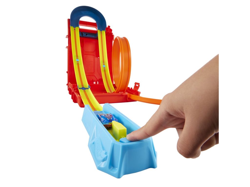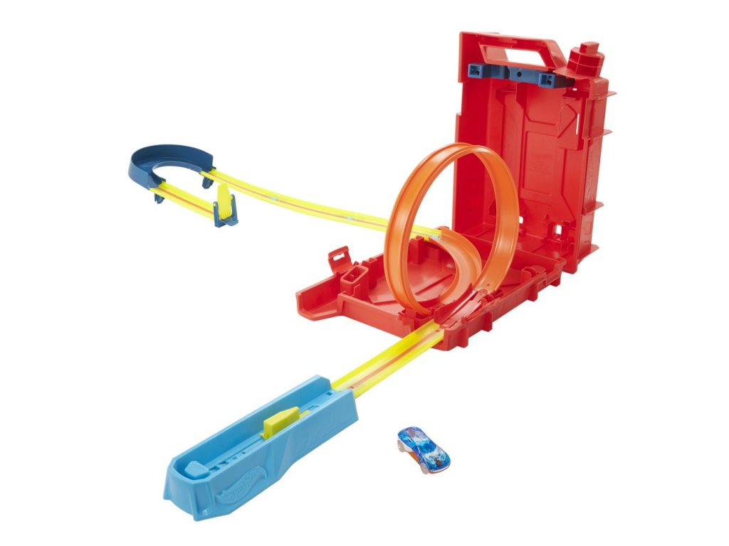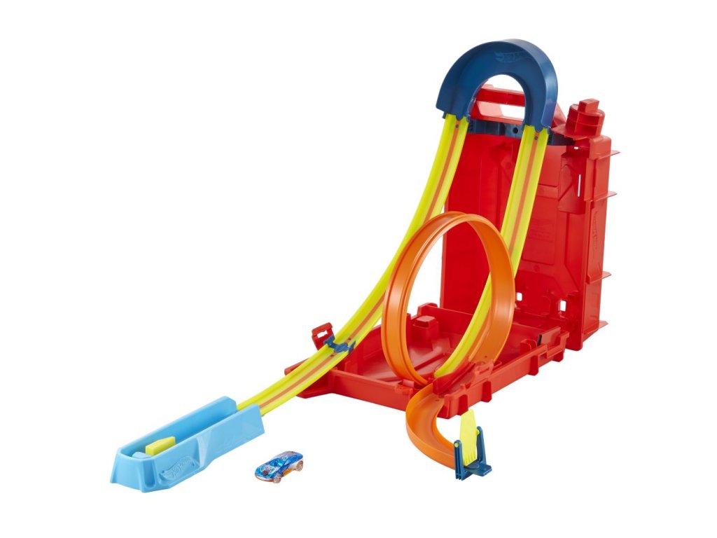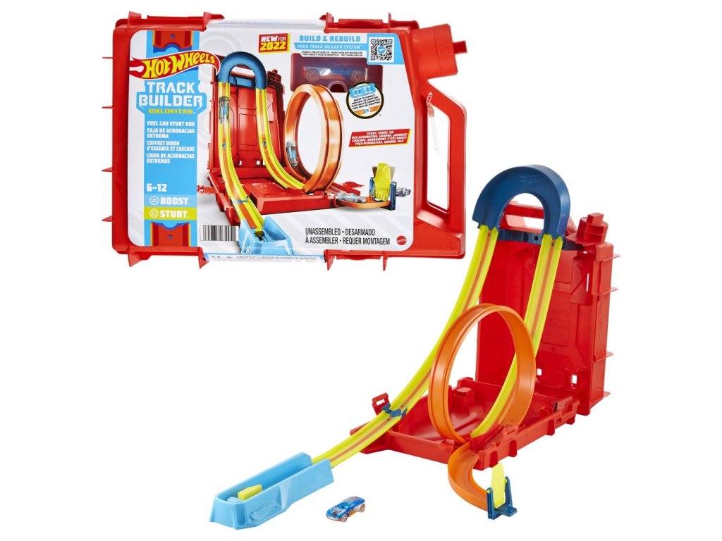 Hot Wheels® Track Builder Kanystr kaskadérských kousků skrývá nekonečné možnosti pro stavění, akrobacii a vylepšování aut Hot Wheels®. Do kontejneru ve tvaru kanystru na benzín se vejde všechno potřebné pro stavbu drah, včetně dílů drah, propojovacích dílů, startovacího zařízení a jednoho auta Hot Wheels®. Kanystr je také možné použít jako součást stavby, kterou pohání dětská představivost.