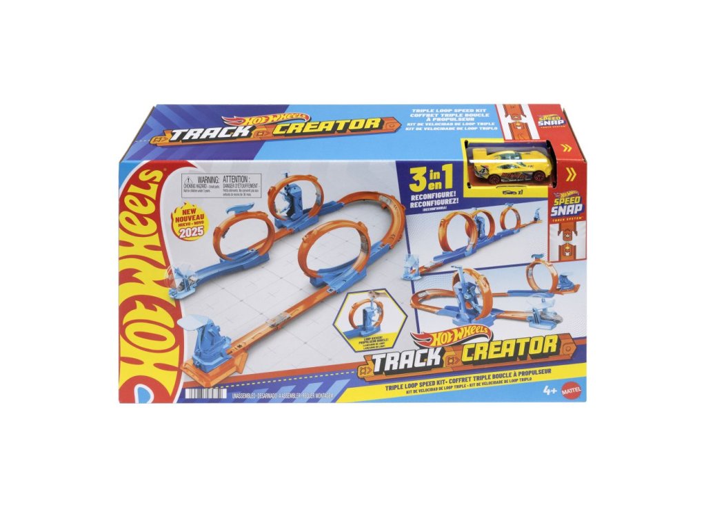 Postavte si parádní dráhu s několika smyčkami díky Hot Wheels Track Creator Trojitá smyčka. Tenhle set obsahuje vše, co děti potřebují k vytvoření různorodých tratí pro Hot Wheels autíčka, a nechává jim volnost v navrhování i stavění. Můžou si postavit dráhu se dvěma nebo třemi smyčkami a kombinovat rovné i zatáčkové díly, aby vznikla opravdu epická závodní trasa. Díky systému drah Speed Snap jde spojování jednoduše a rychle, a přiložené adaptéry umožňují propojit novou dráhu i se staršími systémy Hot Wheels. Součástí balení je jedno autíčko, další vozidla a části dráhy se prodávají samostatně. Barvy a vzhled výrobku se mohou lišit.