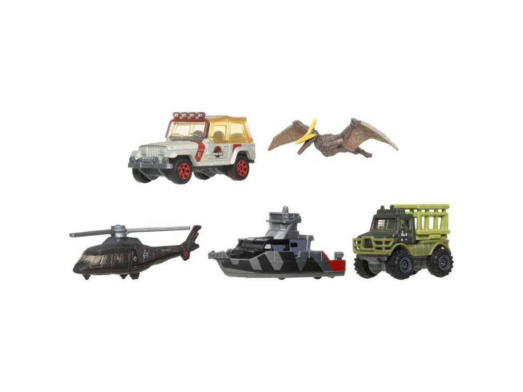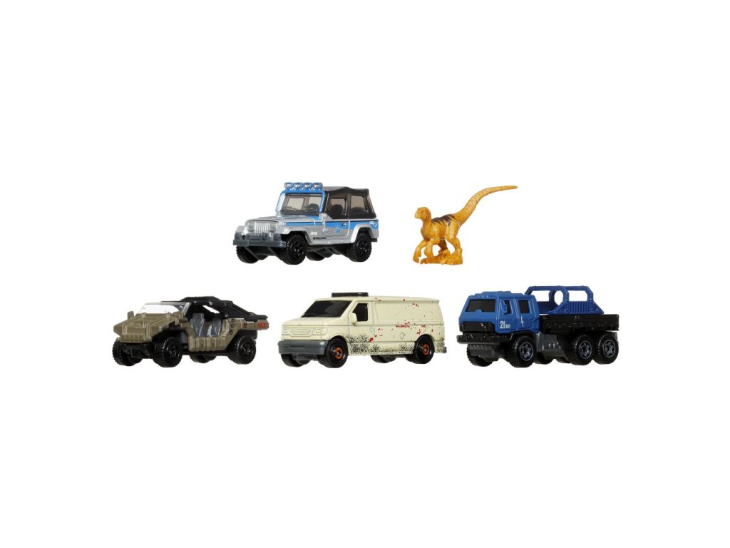 Zažijte filmové dobrodružství s Matchbox Jurský svět! Každá sada obsahuje 4 angličáky v měřítku 1:64 inspirované filmy a jednoho malého dinosaura pro ještě větší zábavu při hře. Pro děti a sběratele od 3 let. Prodává se samostatně dle dostupnosti. Barvy a provedení se mohou lišit.