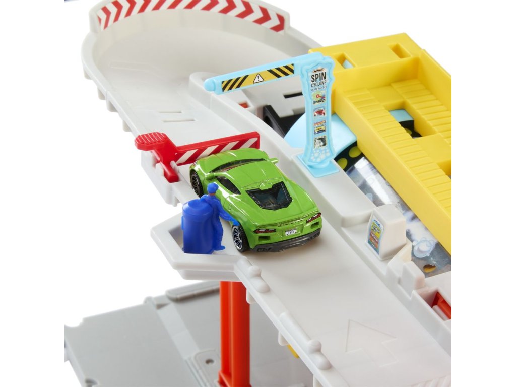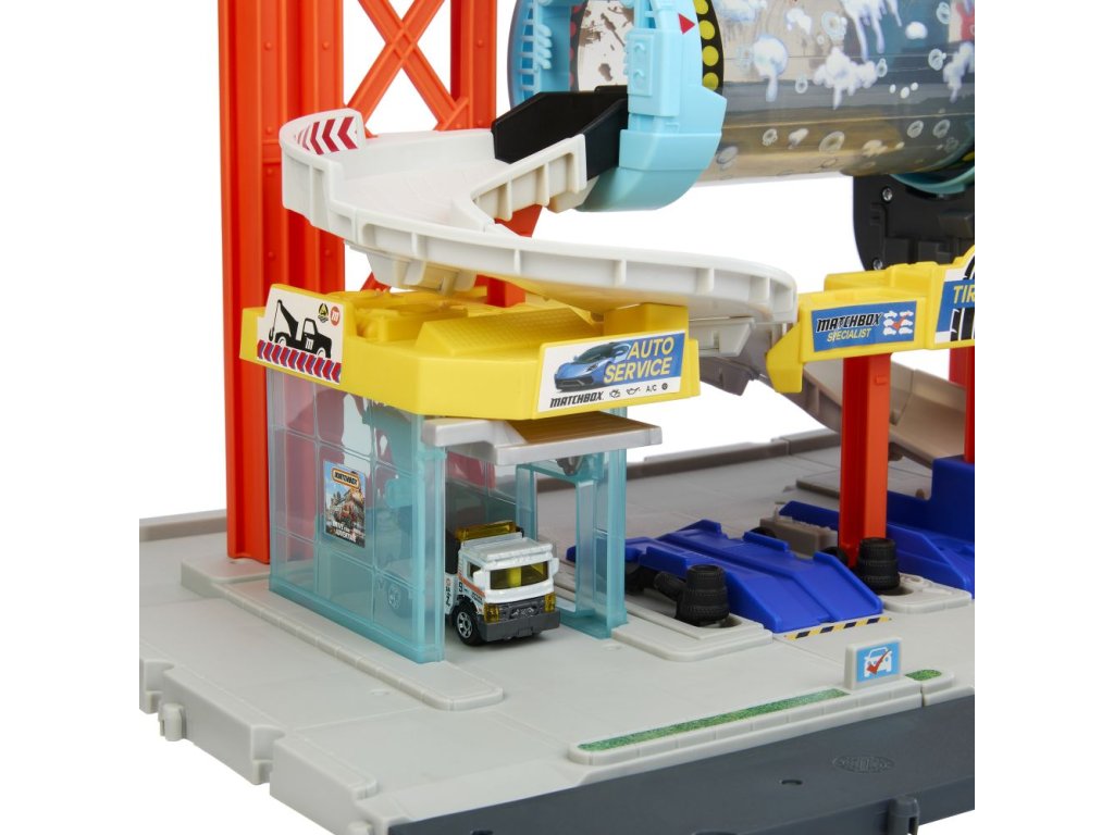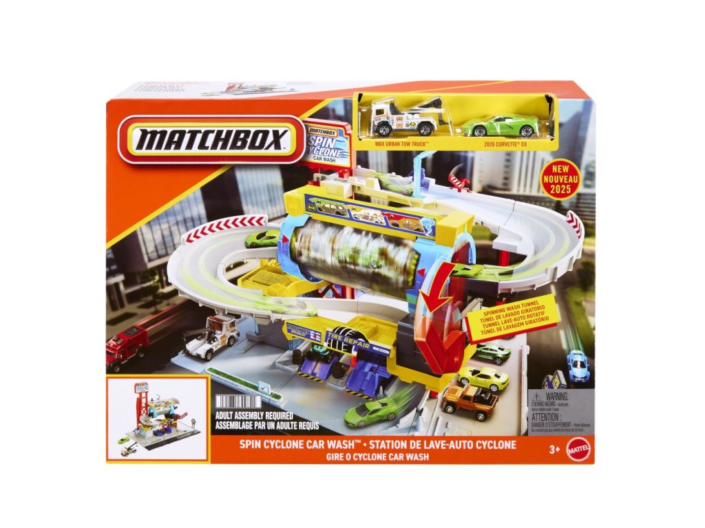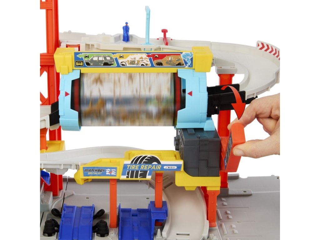 S herním setem Matchbox Super auto centrum se děti ponoří do světa dobrodružství a fantazie! Tato vícepodlažní myčka nabízí spoustu akce – začíná se ve stanici technické kontroly s funkčním výtahem a zónou pro výměnu pneumatik. Na horním patře řídí provoz pohyblivý obsluhující pracovník a auta posílá do vířivé myčky. Stačí zatáhnout za páku a roztočit tunel, který náhodně ukáže jeden ze tří stavů: špinavé, namydlené nebo čisté. Když padne "čisté", autíčko sviští dolů na výjezd. Součástí setu je angličák Corvette v měřítku 1:64 a odtahovka – ideální pro ještě víc zábavných příběhů. Barvy a vzhled výrobku se mohou lišit.