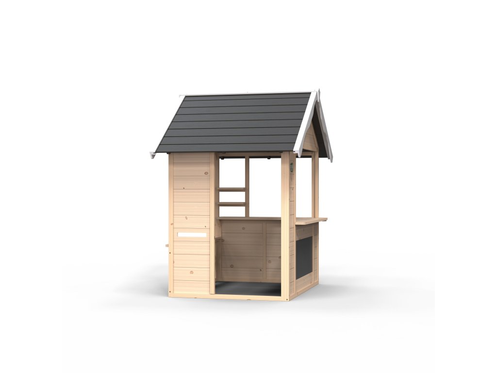 Kompaktní venkovní domeček na hraní v atraktivním a nadčasovém designu, se hodí do každé zahrady. Jednotlivé prvky, jako je pult, plot, tabule na křídu a chytrá střecha s kolečkem na hraní rolí, přivádějí dřevěný domeček Exit Hika do vlastních rukou. Pekař může vystavit své nejchutnější koláčky na velkém pultu, zatímco veterinární asistent u pultu naplánuje termín schůzky se zákazníkem. A tabule? Nabídku týdne na ni mohou napsat rodiče, nebo sourozenci.