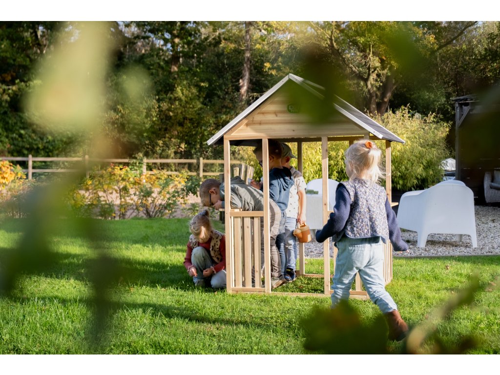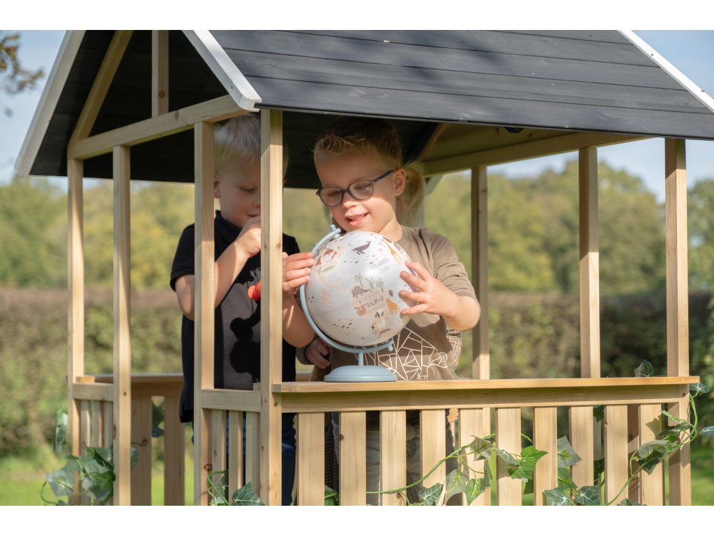 Dřevěný domeček Panorama je vyroben z vysoce kvalitního cypřišového dřeva s certifikátem FSC, což znamená, že tento druh dřeva je přirozeně odolný vůči povětrnostním vlivům jako je déšť, slunce, a sníh. To znamená delší životnost a tím i delší potěšení z hraní. Protože vědomě vybíráme dřevo z lesů s certifikátem FSC, můžete si být jisti, že toto zahradní herní vybavení je dobré pro životní prostředí. Hrací domek Panorama, byl vyvinut podle naší udržitelné filozofie Exit.