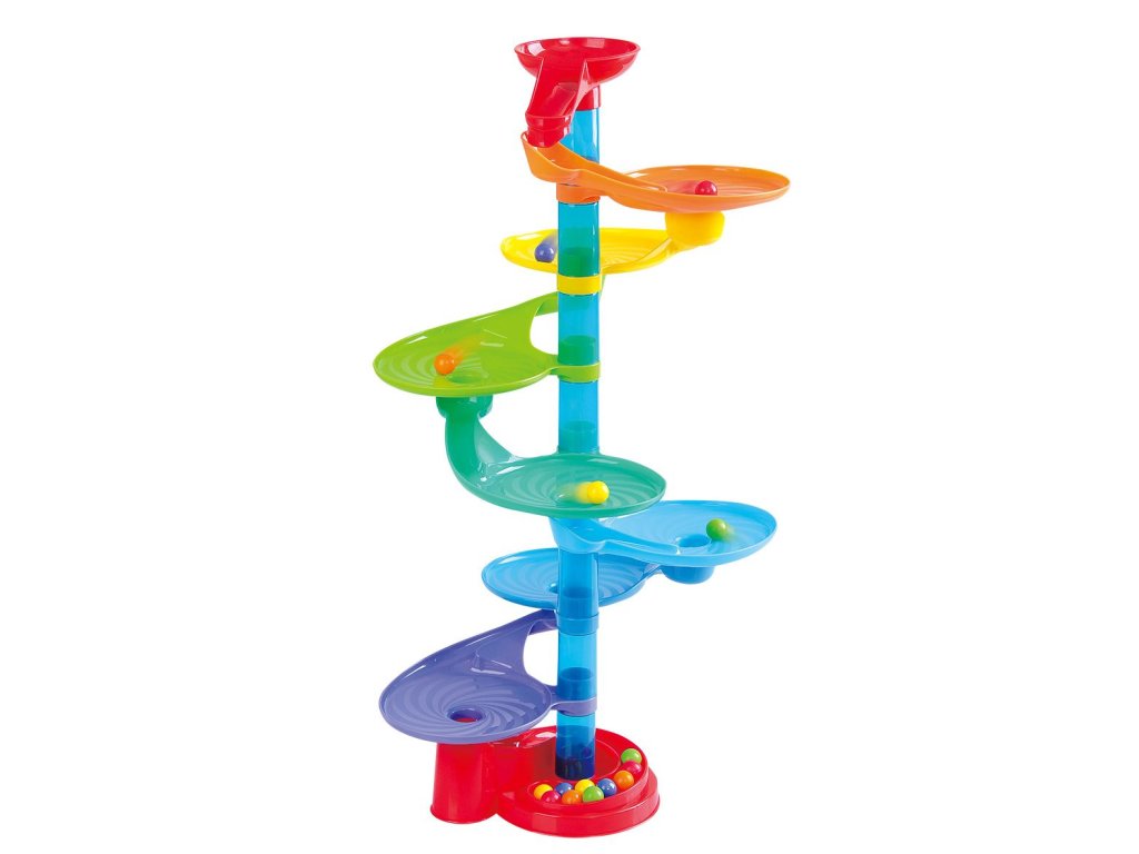 Playgo Kuličková dráha. Obsahuje 23 dílků dráhy a barevné kuličky.