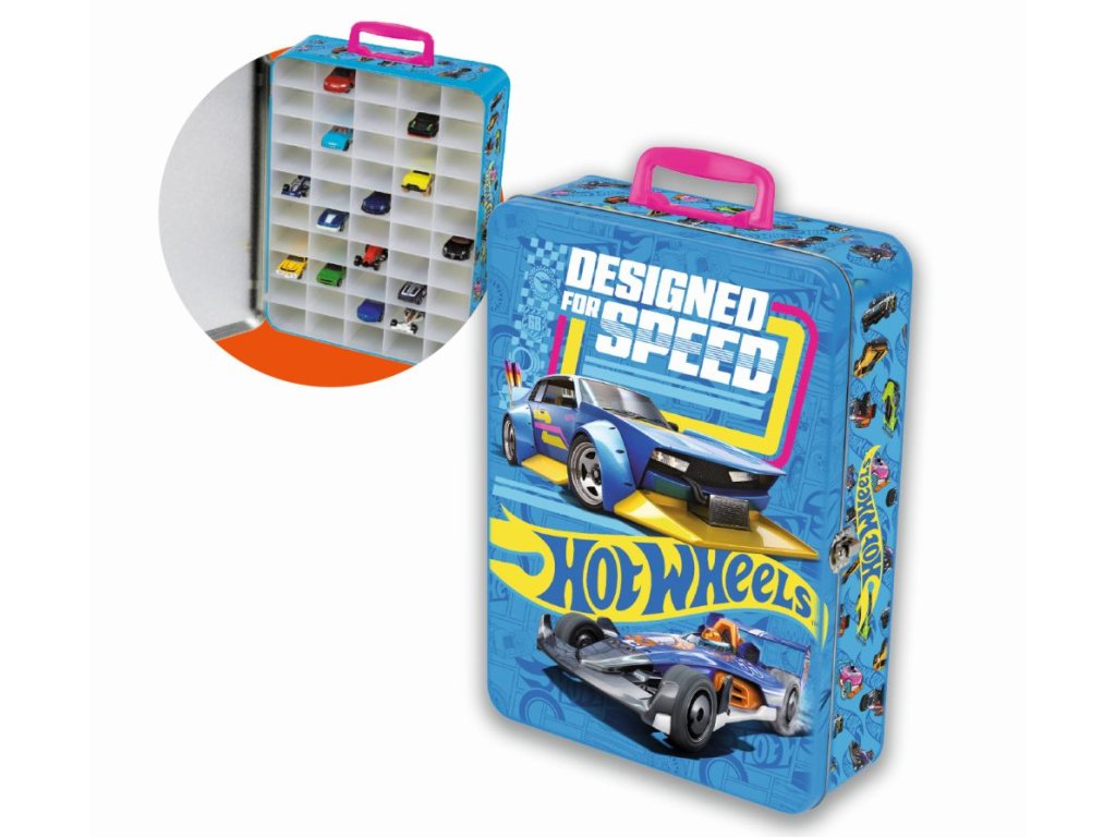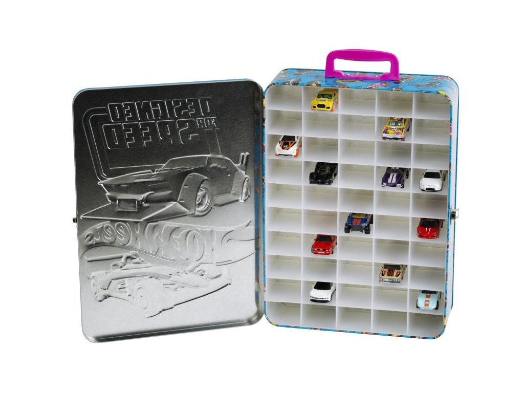 Sběratelský plechový kufřík s rukojetí, do kterého se vejde 50 kusů autíček Hot Wheels!