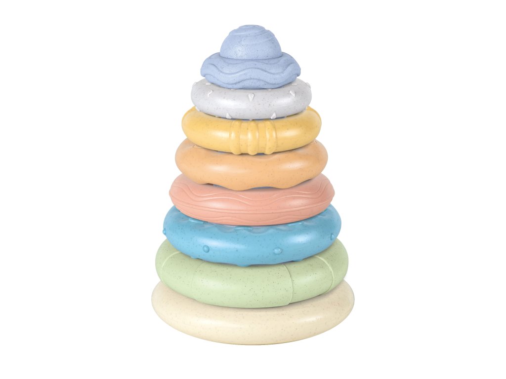 Věž kroužky na tyčce. Velikost 20 cm. Kroužky zle navlékat na tyč, nebo spojovat v řetěz.