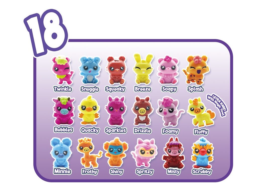 S Washlings Kouzelnou pračkou se můžeš stát opravdovým sběratelem! Čeká na tebe celkem 18 úžasných zvířátek Washlings, a každé z nich je tak roztomilé.