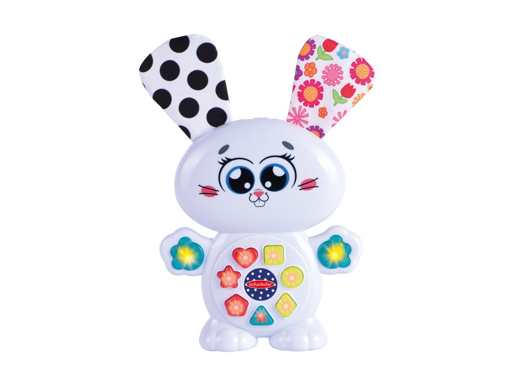 Zajíc interaktivní s efekty. Velikost 18 cm. 2xAA baterie součástí balení. Vydává světelné a zvukové efekty. Aktivace tlačítky na bříšku. Funkce automatického vypnutí. Přepínač na vypnutí a dvě úrovně hlasitosti.