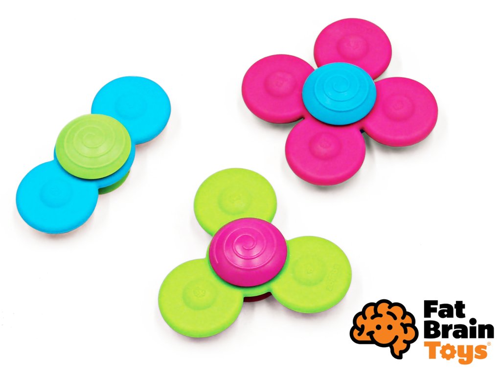 WhirlySquigz - spinnery pro nejmenší z měkkého materiálu. S přísavkami pro upevnění na různé povrchy.