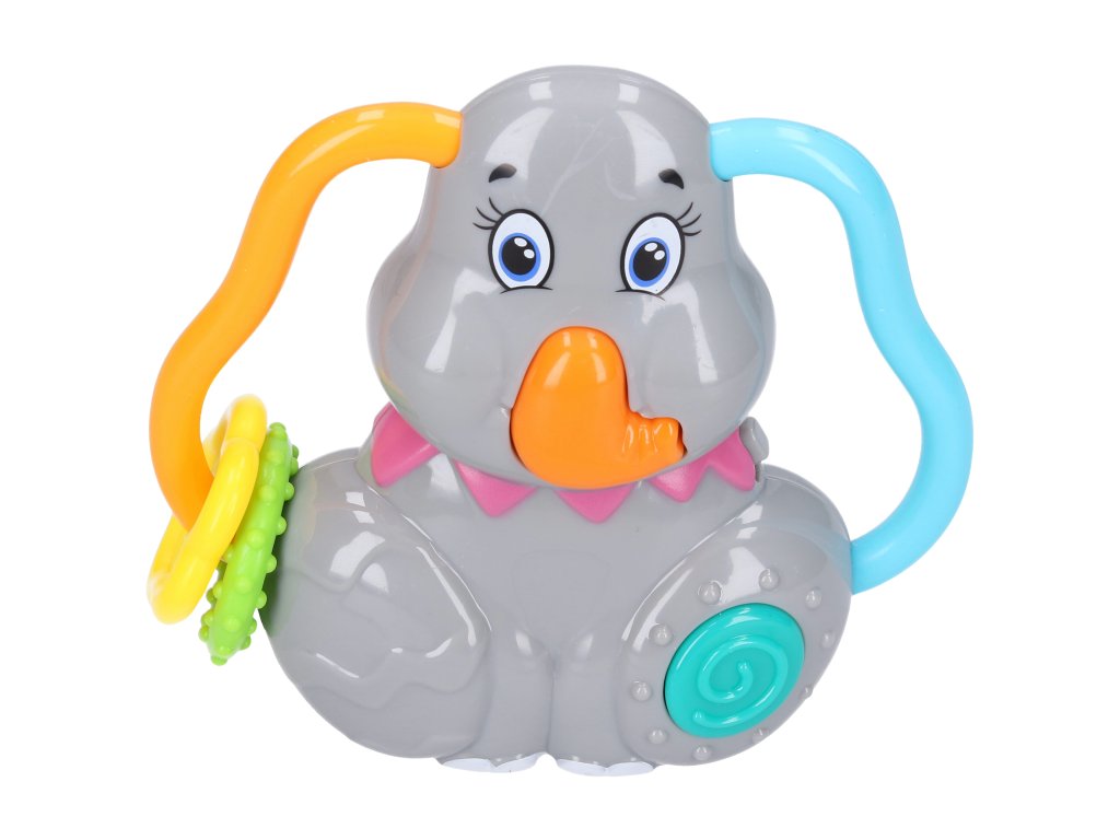 Maamaa Slon. Světelné a zvukové efekt oranžovým tlačítkem. 3xAG13 baterie součástí. Přepínač ON/OFF.