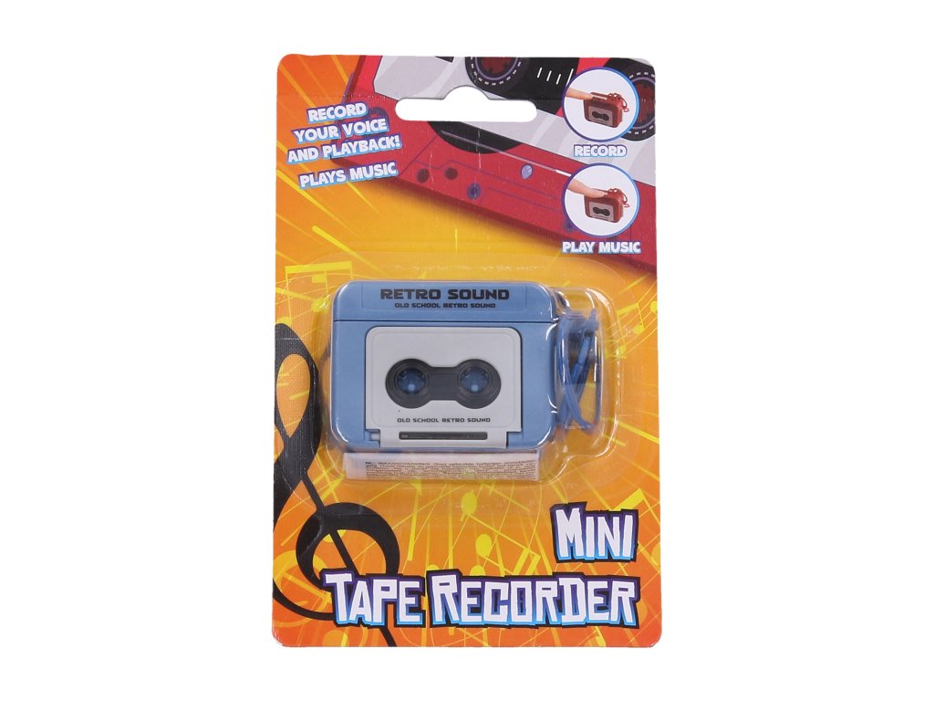 Přívěsek na klíče kazetový nahrávač na baterie s hudbou. Velikost 5,5cm. 2 varianty: modrá, červená