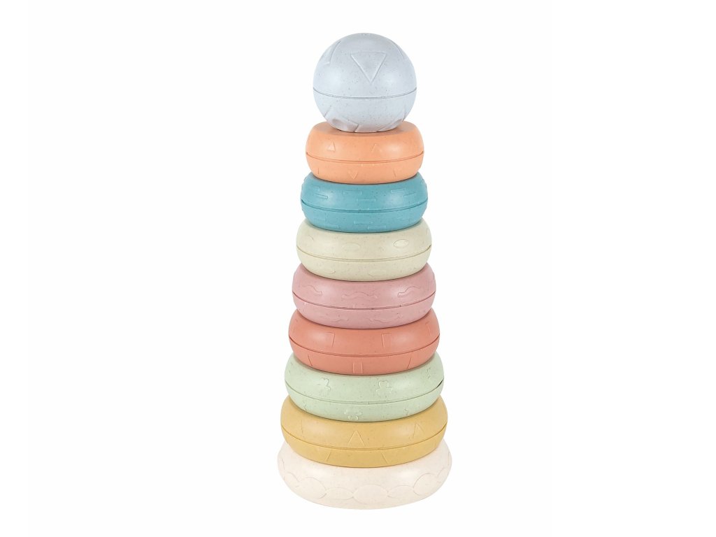 Pyramida kroužková. Rozměry věže 8x2x20,7 cm. Balení obsahuje 8 kroužků.