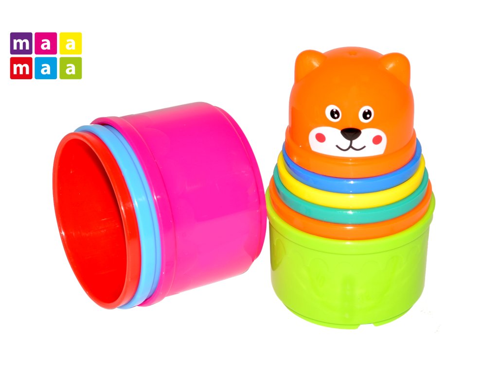 pyramida se skládá ze setu různě velkých a různě barevných kelímků