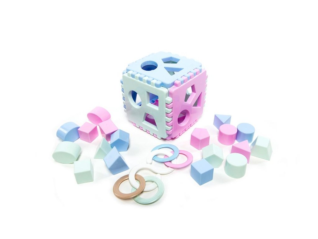 Baby set obsahuje vkládací kostku a chrastící kroužky. Hračka je vhodná pro rozvoj jemné motorky. Zároveň je uzpůsobena tak, aby podporovala rozvoj zraku, učila děti rozpoznávat předměty a napomáhala zdokonalení hmatu. Vhodné pro děti od 1 roku.