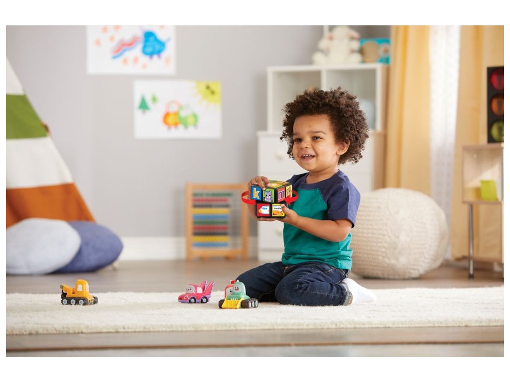 Otočná kostka se zvířátky od VTech® je nápaditá hračka vyrobená speciálně pro miminka. Otočením kostky doleva, nebo doprava se spustí zábavné výukové fráze. Dítě poznává zvířátka, jejich zvuky, dopravní prostředky a barvy. Hrou s touto kostkou dítě posiluje motorické dovednosti, sluch, hmat, zrak i řeč.