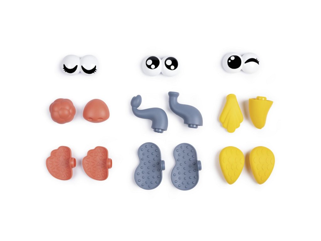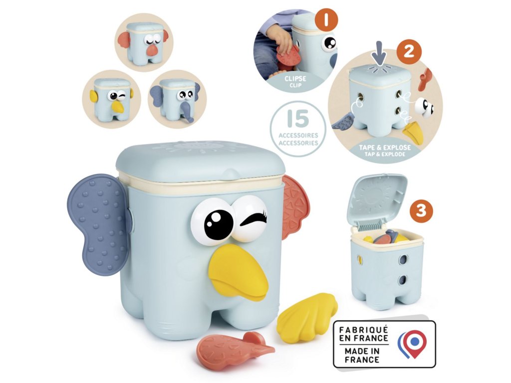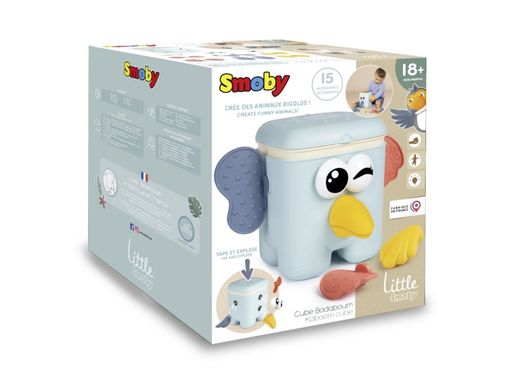 Interaktivní hrací kostka Kaboom tvoří základnu pro vytvoření 3 zvířat: kolala, tukan a slon. Součástí je 15 doplňků k tvoření - oči, uši, nos atd. Tato hračka podporuje jemnou motoriku, koordinaci a objevování různých částí tváří zvířat. Po sestavení stačí stisknout hlavu a všechny přidělané části spadnou. Rozměry výrobku (DxŠxV): 16,8 x 15,8 x 19,6 cm. Hmotnost: 0,592 kg.