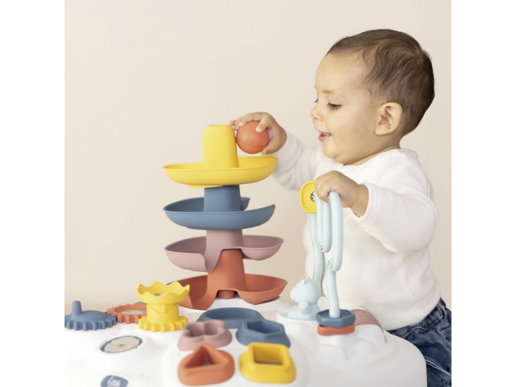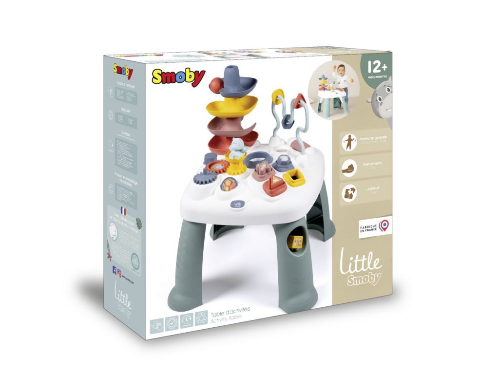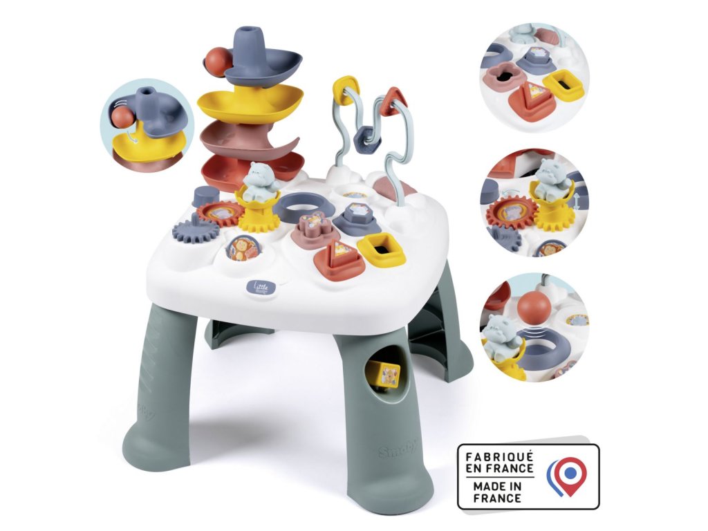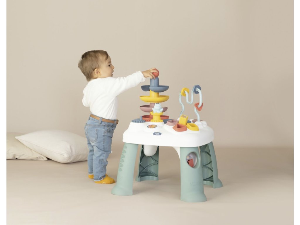 Všestranný hrací stůl Little Smoby Activity se svými četnými funkcemi slibuje vzrušující herní dobrodružství pro děti od 12 měsíců. Tato interaktivní výuková hračka zve děti k objevování a zkoumání. Mnoho barevných herních prvků přitahuje pozornost těch nejmenších a trénuje motorické a sluchové dovednosti. Ve hře na rozpoznávání tvarů se stavební kameny zasouvají do příslušných otvorů. Malá kuličková dráha s rampou vás zve ke hře a zkoušení. Rozměry produktu (DxŠxV): 45 x 45 x 60 cm.