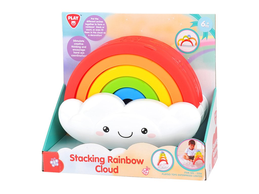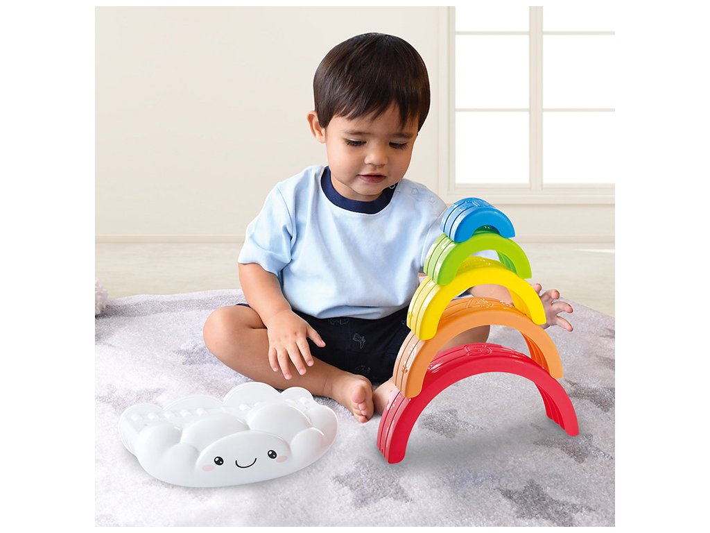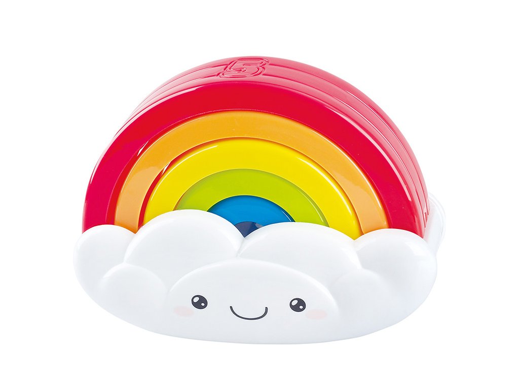 Skládačka rozvíjí dětskou motoriku a zručnost dítěte. Cílem je složit části duhy na sebe, aby držely.