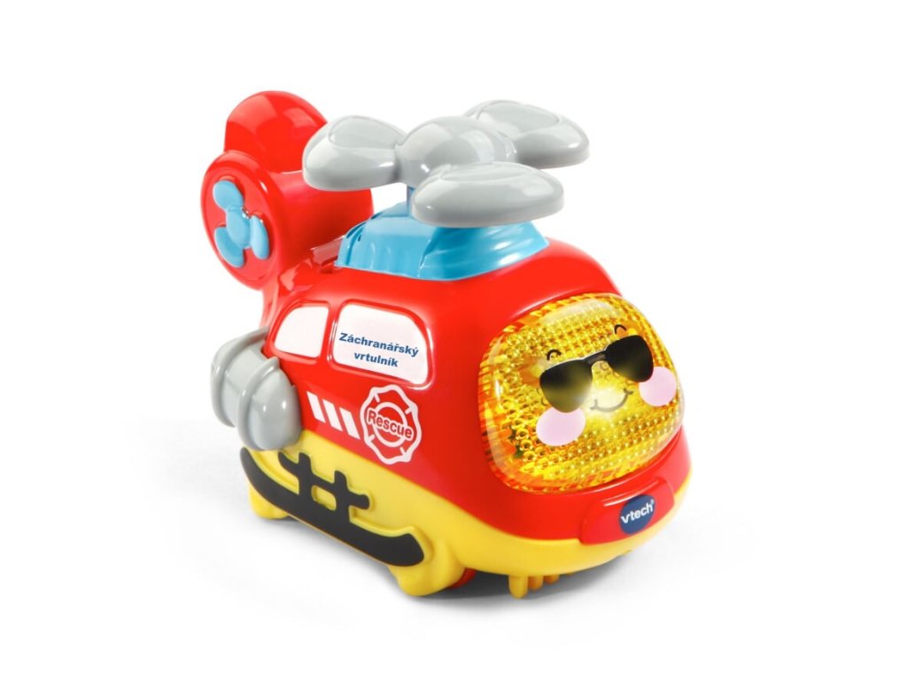 Mluvící záchranářský vrtulník od Vtech z oblíbené série Autíčka Tut-Tut. Komunikuje s dětmi a lze si s ním hrát samostatně nebo i s dráhami Tut-Tut. Při hře s dráhami pro autíčka Tut-Tut komunikuje pomocí chytrých bodů Smartpoint, které jsou umístěné na různých místech dráhy. Včetně automatického vypínání v případě delší prodlevy ve hře (automaticky se zapne při pokračování hry). Každé autíčko či letadlo ze série Tut-Tut mluví jiným hlasem, používá rozdílná slova, fráze i zazpívá jinou písničku. Rozvíjí představivost a logické myšlení. Funguje na 2× AAA baterie (jsou součástí výrobku). Rozměry: 8 × 5 × 6 cm. Doporučený věk: od 1 roku.