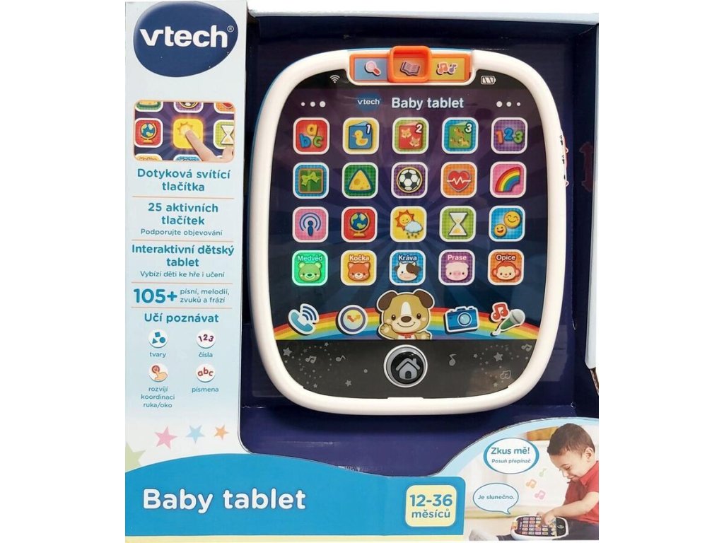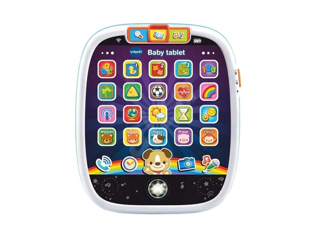 Svítící dotykový tablet napodobuje skutečný tablet dospělých. Speciální aplikace přinesou i těm nejmenším dětem spoustu poznání. Získají tak základní znalosti o písmenech, číslech, barvách, tvarech i zvířatech.