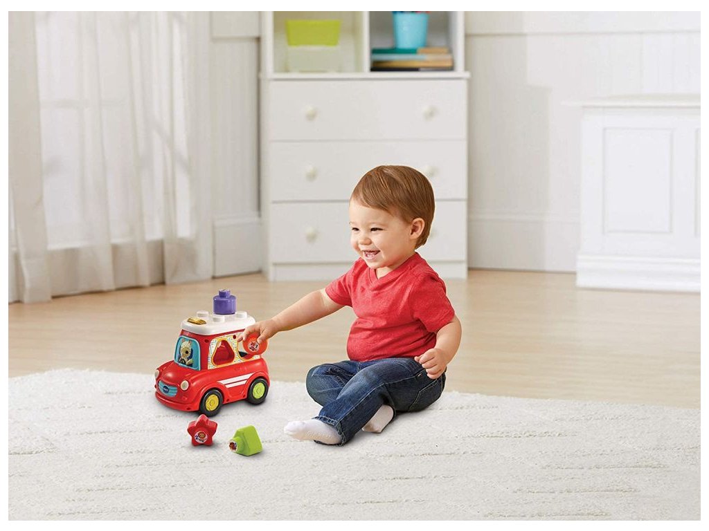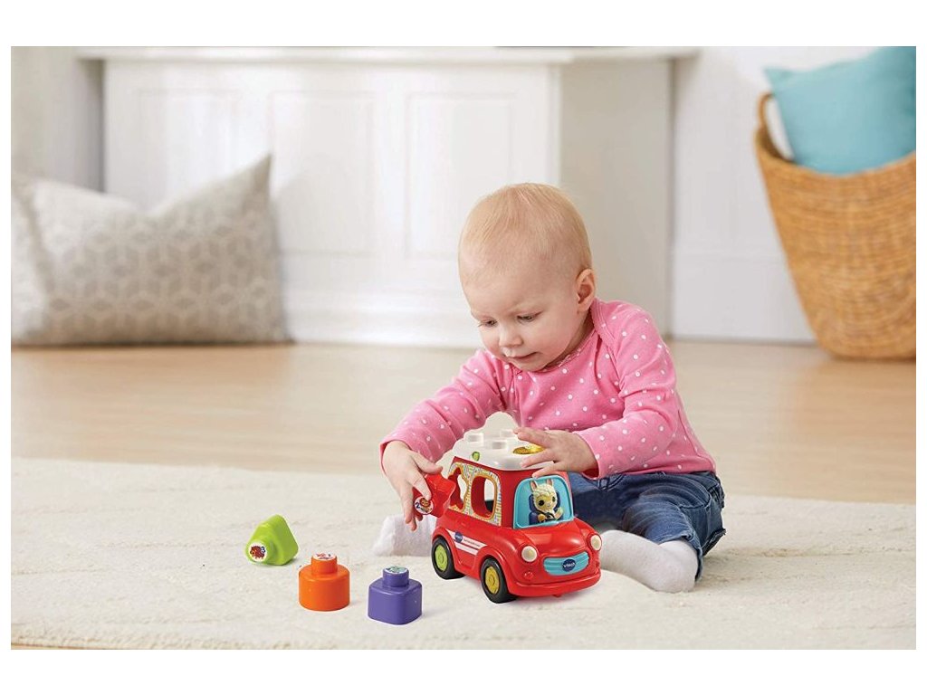 Vtech Červené mluvící auto je skvělá interaktivní „vkládačka" pro děti již od 12 měsíců s roztomilou lamou za volantem. Děti se naučí poznávat tvary (čtverec, hvězda, trojúhelník, kruh), čísla, zvuky a názvy zvířat. Budou také poznávat jednotlivé číslice i barvy. Jednotlivé tvary lze vozit na střeše autíčka nebo v zavazadlovém prostoru s vyklápěcím víkem kufru.
