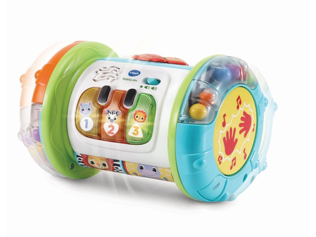 Dopřejte dětem více pohybu a legrace s hračkou Magický válec od VTech®. Tato skvělá hračka přináší poznání a aktivní zábavu jak sedícím, tak i lezoucím dětem. Svítící klávesy piana učí poznávat zvířátka, barvy, čísla i tóny. Krásné české písničky si děti určitě rychle oblíbí. Elektronický bubínek na boku válce vydává magické zvuky se zábavnými efekty.