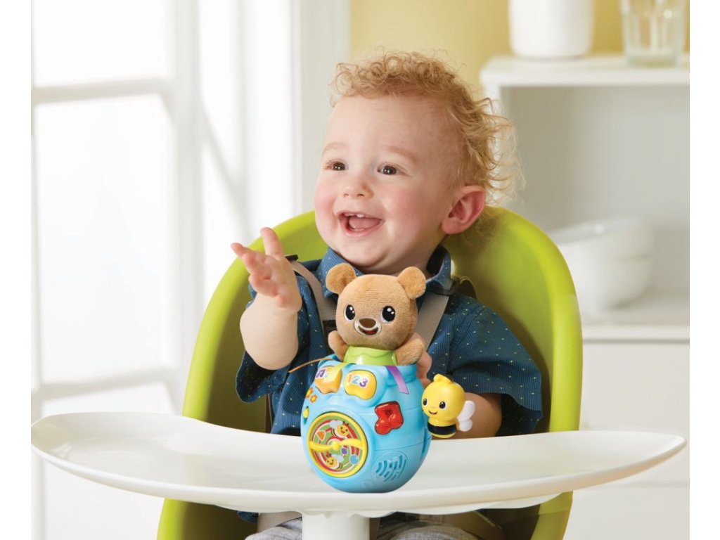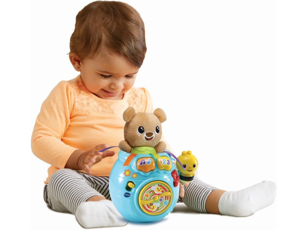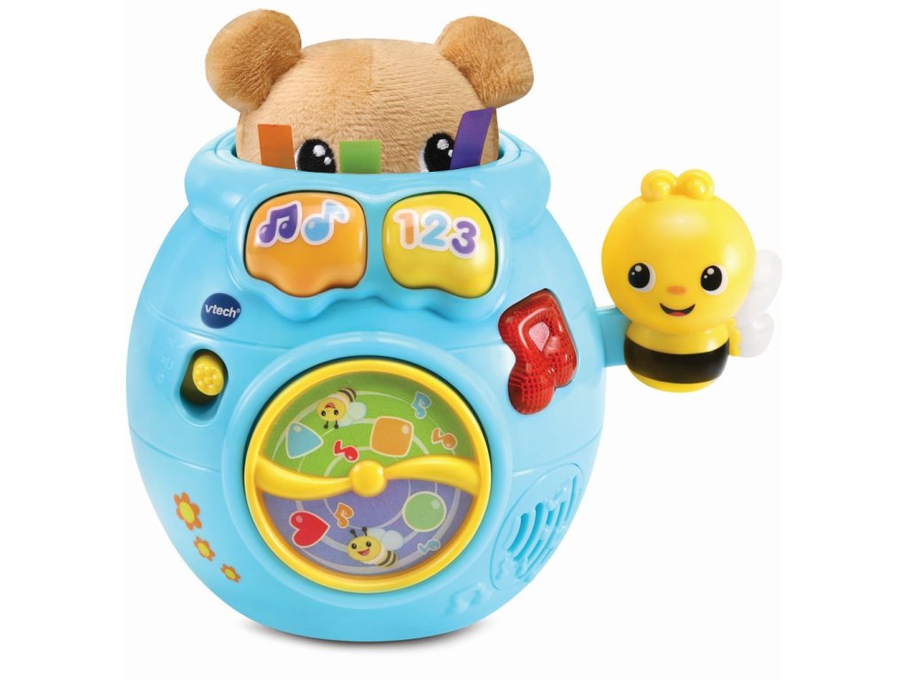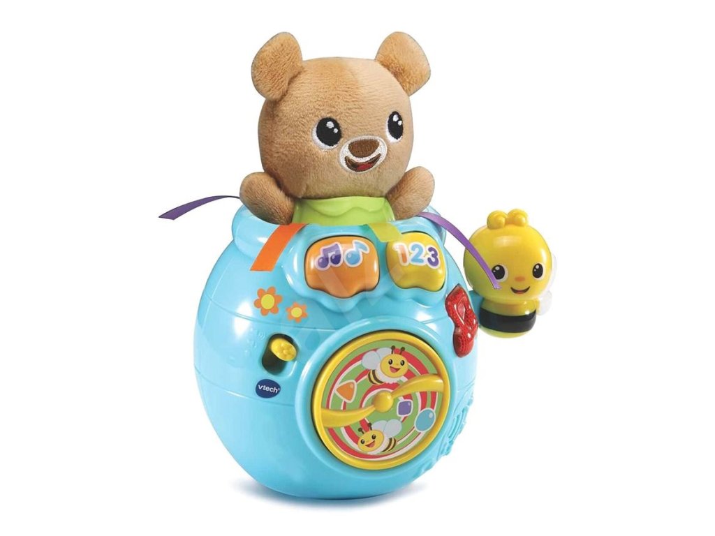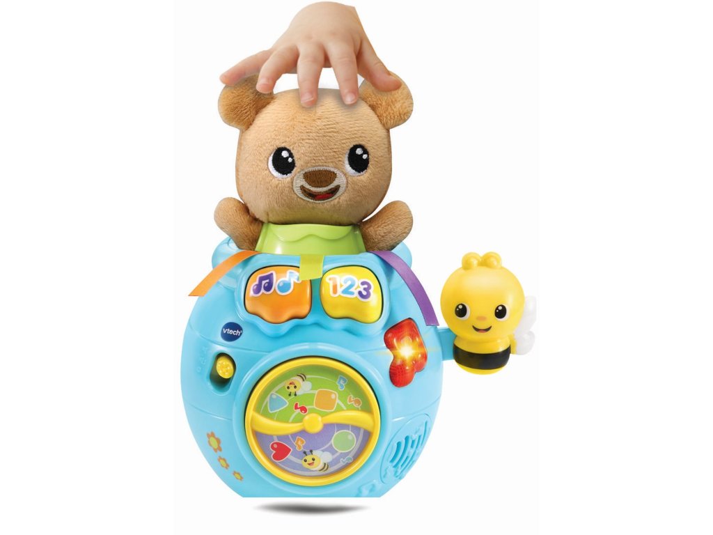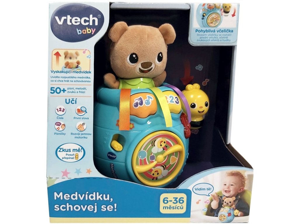 Vtech Medvídku, schovej se! je legendární hudební a vzdělávací hračka pro děti již od 6 měsíců. Roztomilými frázemi interaktivně komunikuje s dítětem. Lehkým zatlačením medvídka do hrnce se medvídek schová. Následným stiskem tlačítka pak medvídek „vyskočí“ z hrnce ven. Vše je doprovázeno zábavnými frázemi, písněmi a melodiemi. Pohyblivá včelka na boku hrnce s medem dokáže také roztočit vrtulku na přední části hrnce.