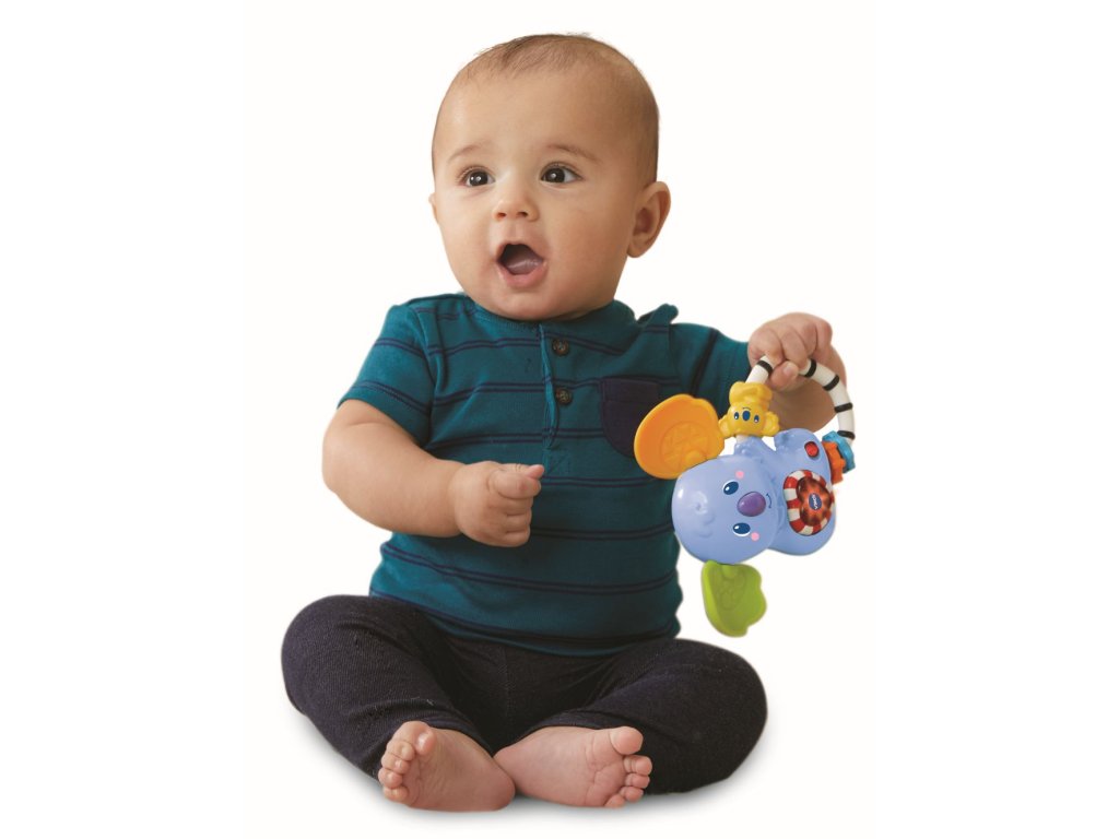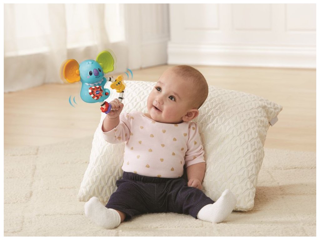Upovídaná koala se zabudovaným čidlem poslouží nejmenším dětem jako chrastítko. Zatřesením nebo stisknutím červeného srdíčka se také spustí milé písničky, fráze, zvuky a melodie.