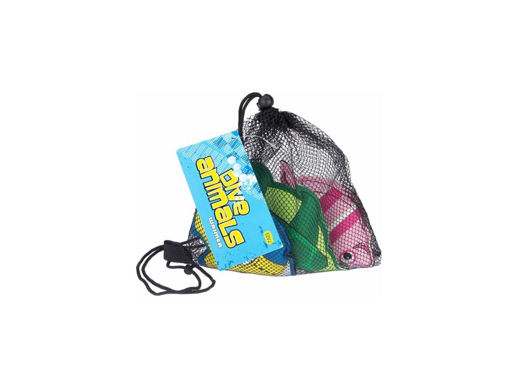 Waimea Dive Animals je sada tří potápěcích pomůcek (ryba + ponorka + želva), které slouží k výuce potápění a orientace dětí pod vodou zábavnou formou. Ihned po vhození do vody začnou klesat ke dnu a stejně tak rychle se děti mohou pustit do jejich lovení. Dive Animals jsou vyrobené z odolného neoprenu a jsou vyplněné pískem. Pokud chcete v létě děti u bazénu zabavit, pak by tato sada neměla chybět ve Vašem inventáři. Celý set se dodává v praktické, síťované tašce. Upozornění: Produkt používejte vždy pod dohledem dospělé, zodpovědné osoby, aby nedošlo k utonutí dítěte.