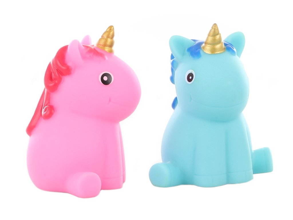 Svítící jednorožec do vany. Obsahuje neměnitelné baterie. Rozměry cca 7 x 5,5 x 4,5 cm. Baleno v igelitovém sáčku. Věk 3+