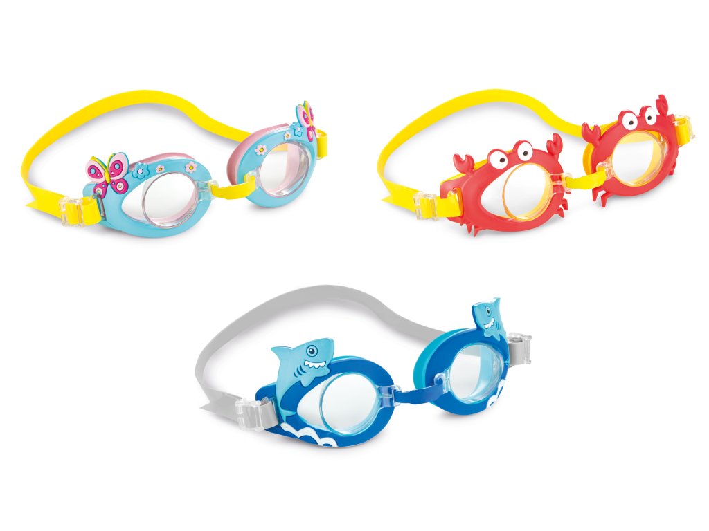 Zábavné dětské brýle s motivy zvířátek. Brýle dětem umožní se klidně koukat pod vodou bez nejmenších problémů. Výhodné zejména v bazénech, kde se chloruje voda. S průhlednými bezpečnostními čočkami. Pohodlné tvarované košíčky na oči pro dokonalou těsnost. Upravitelný pásek pro bezpečné a pohodlné nošení.