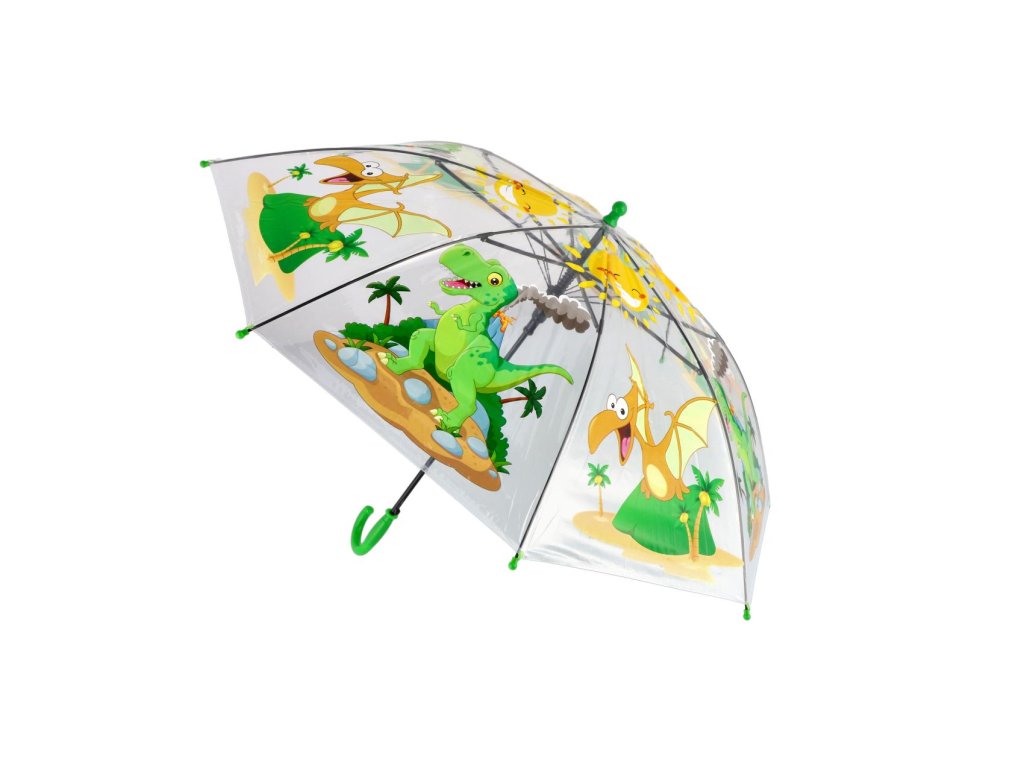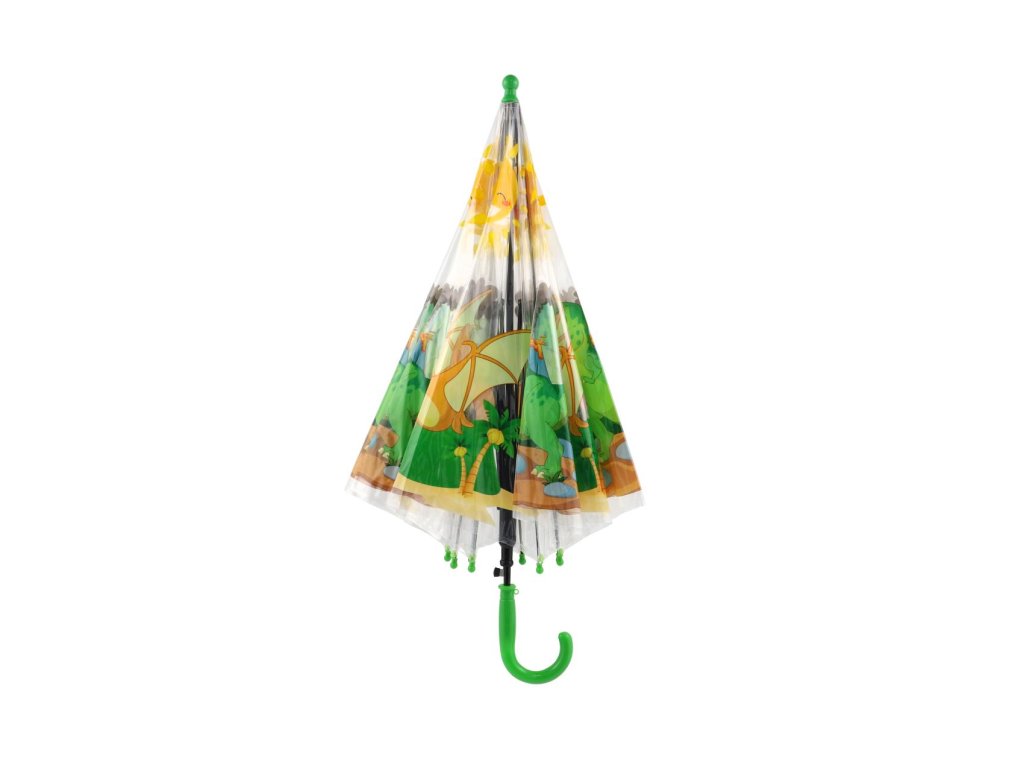 Když do deště, tak vesele s tímto průhledným deštníkem s barevným motivem dinosaura, který udělá radost všem dětem. A tak Vaše ratolesti budou moci prožít dobrodružství i v sychravém počasí. Deštník má vystřelovací otevírání. Deštníček budou moci děti nosit do školy, školky, nebo na výlety. Výška deštníku 64 cm Rozměry výrobku 9 x 64 x 9 cm.