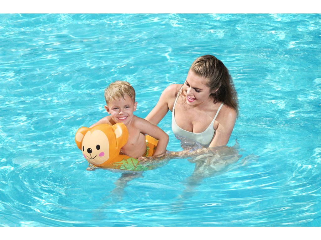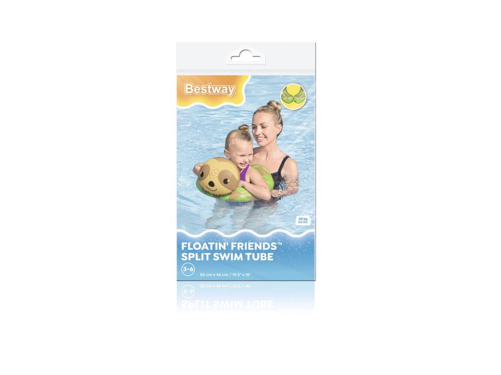S nafukovacím kruhem Bestway bude plavání jedna radost! Vyberte si tučňáka, želvu, lenochoda, tukana, opičku nebo zebru. Vyrobeno z kvalitního a odolného vinylu. Rozměr nafouklého kruhu: 45-57 x 52 cm. Obsahuje: 1 nafukovací kruh. Doporučený věk: 3-6. Používejte pouze pod dohledem dospělé osoby a ve vodě, kde dítě dosáhne na dno. Assort je náhodný mix modelů. Výběr nelze ovlivnit. Rozměr balení: 30 x18 x 1 cm.