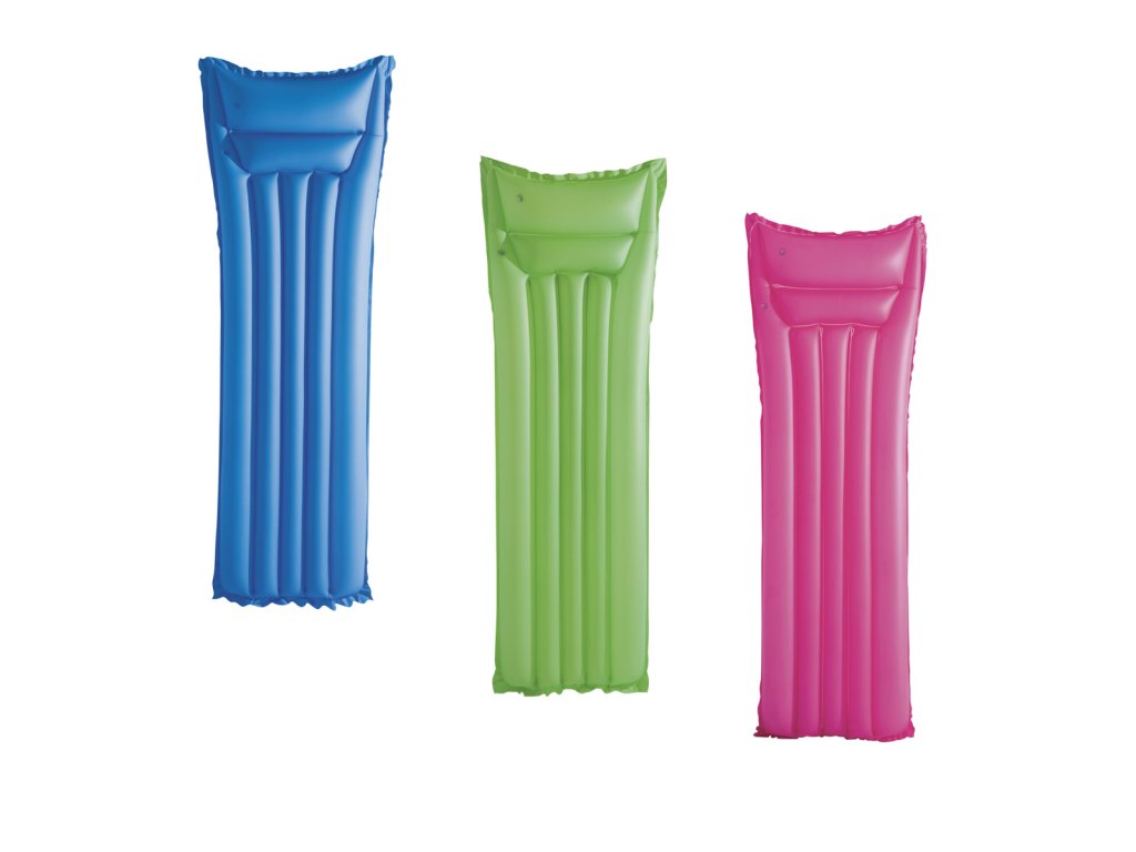K dostání ve 3 barvách (modrá, zelená, růžová). Pojistné ventily. Robustní testovaný vinyl. 2-komorový systém. Součástí balení: sada náplastí pro opravu. Assort je náhodný mix barev a výběr nelze ovlivnit. Rozměr: 183x69 cm. Obsah: jedna nafukovačka, set náhradních náplastí. Značka: Bestway