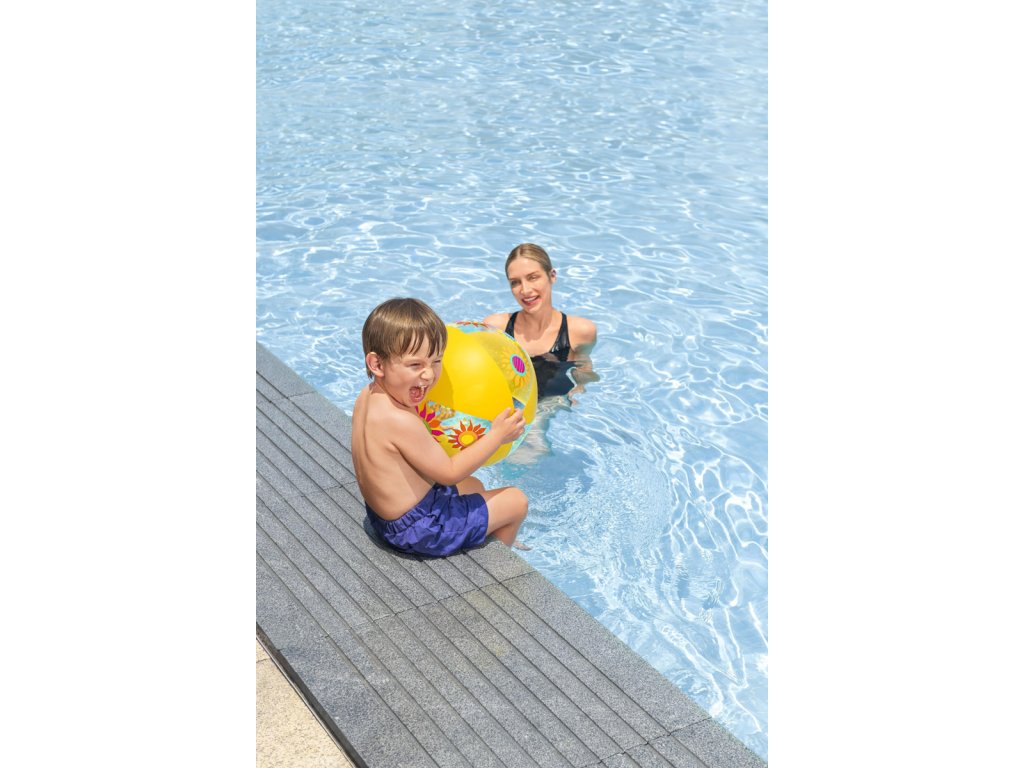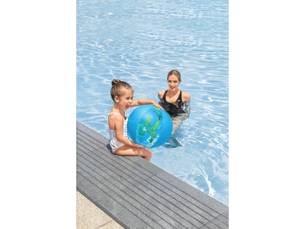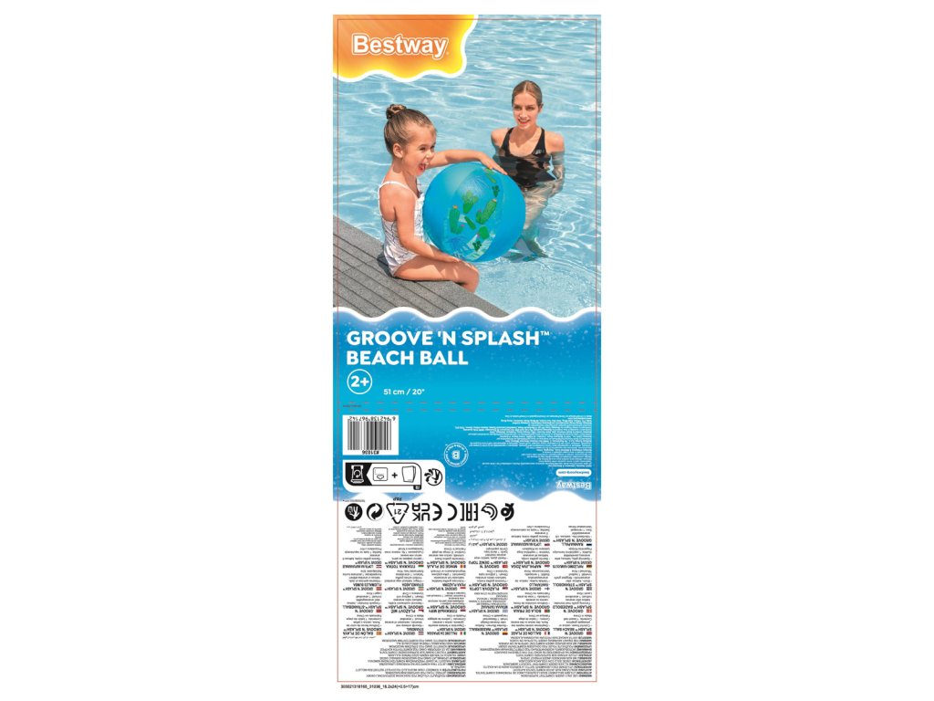 S plážovým míčem Bestway® Groove n' Splash™ může vodní zábava začít. Tento plážový míč zaručuje hodiny zábavy ve vodě. Díky kompaktní, nafouknuté velikosti O 34 cm je tento plážový míč ideální pro děti od 2 let. Udělejte sobě a svým dětem radost a užijte si ve vodě spoustu zábavy. Vyrobeno z kvalitního a odolného PVC. Používejte pouze pod dohledem dospělé osoby a ve vodě, kde dítě dosáhne na dno. 3 barevné varianty v kolekci. Plážový míč Groove n' Splash™ je k dispozici ve třech různých provedeních: květina, kaktus nebo ananas. Assort je náhodný mix modelů. Výběr nelze ovlivnit. Rozměry nafouknutého míče: O 34 cm. Rozměry nenafouknutého míče: 51 x 17 cm. Rozměry balení: 30 x 18 x 0,7 cm. Věk: 2+