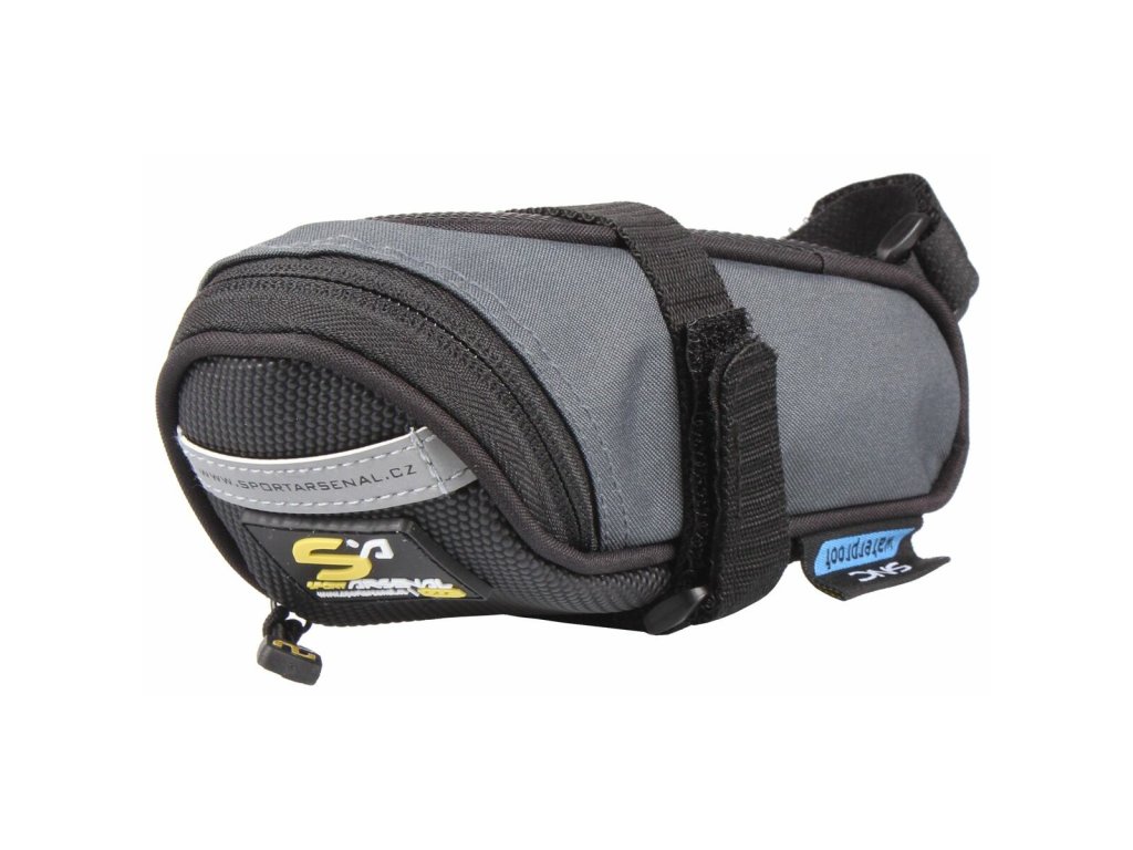 Brašna pod sedlo 506 je díky svému minimalistickému designu a štíhlému aerodynamickému tvaru vhodná především pro silniční a fitness kola. Má rozměr 19 x 9 x 6 cm, objem cca 0,4 l a slouží k uložení toho nejnutnějšího, co budete při své fitness vyjížďce nebo tréninku potřebovat, jako například náhradní duši, lepení, univerzální montážní klíč, peněženku a doklady. Pevná konstrukce brašny a voděodolný (ne vodotěsný) materiál zaručují její dlouhou životnost. Brašnu 506 uchytíte snadno a pevně pomocí 1 pásu na suchý zip ke konstrukci sedla a 1 pásku na suchý zip k sedlové trubce. Na brašně je našitý bezpečnostní reflexní 3M pásek pro lepší viditelnost. Součástí balení je navíc užitečný kratší kompresní popruh zdarma. Parametry: Rozměr: 19 x 8 x 6 cm Objem: 0,4 l Váha: 80 g Uchycení: 2 pásy na suchý zip Materiál: PES s PVC vnitřním zátěrem