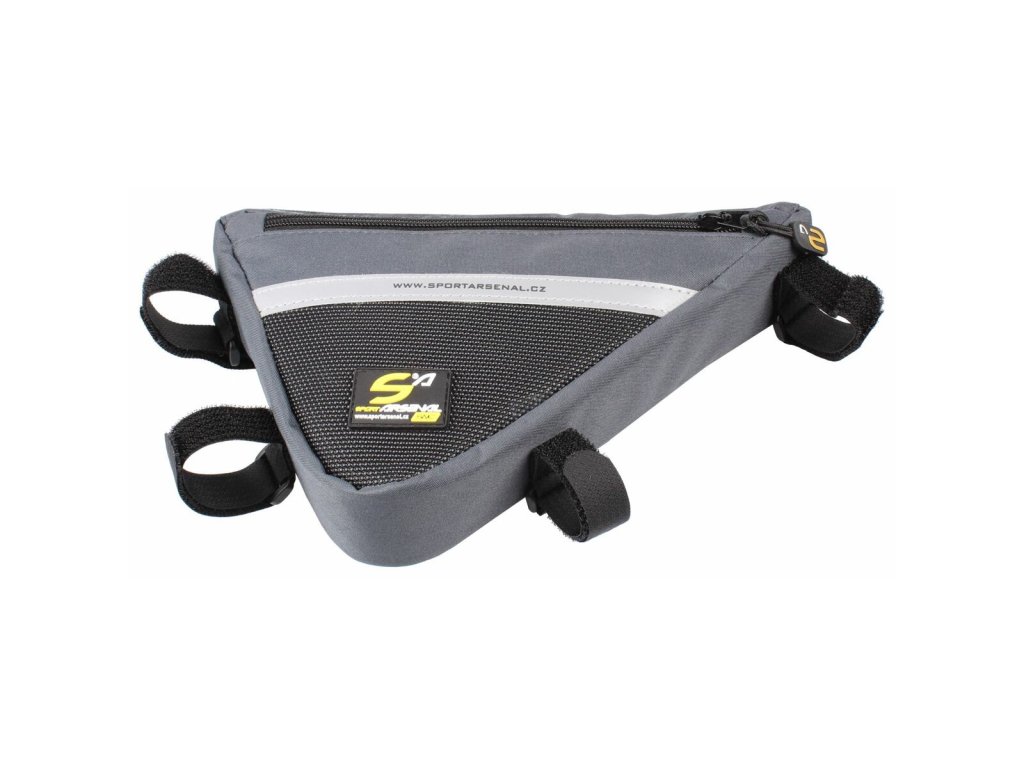 Praktická trojúhelníková brašna 512 střední velikosti vám spolehlivě poslouží pro uložení menších příručních věcí jako například peněženky, mobilu, drobného nářadí, rukavic nebo zámku. Brašna 512 s objemem 1 l o velikosti 27 x 15 x 23 cm se dvěma kapsami na zip je určená pro dámská kola bez horní rámové trubky. Snadno se uchytí uprostřed do spodní části rámu pomocí dvou suchých zipů k přední rámové trubce a dvou suchých zipů k sedlové trubce. Kvalitní materiál použitý k výrobě brašny je vodovzdorný (ne vodotěsný), konstrukce je vyztužená a pevná a tak dokonale drží tvar. Na brašně je našitý bezpečnostní reflexní 3M pásek pro lepší viditelnost. Součástí balení je užitečný kratší kompresní popruh zdarma. Parametry: Rozměry: 27 x 15 x 23 cm, hloubka 5 cm Úložný prostor: celkem 2 kapsy na zip, na levé straně objemnější kapsa, na pravé straně plochá kapsa s menším objemem Objem: 1 l Váha: 170 g Materiál: PES s PVC s vnitřním zátěrem