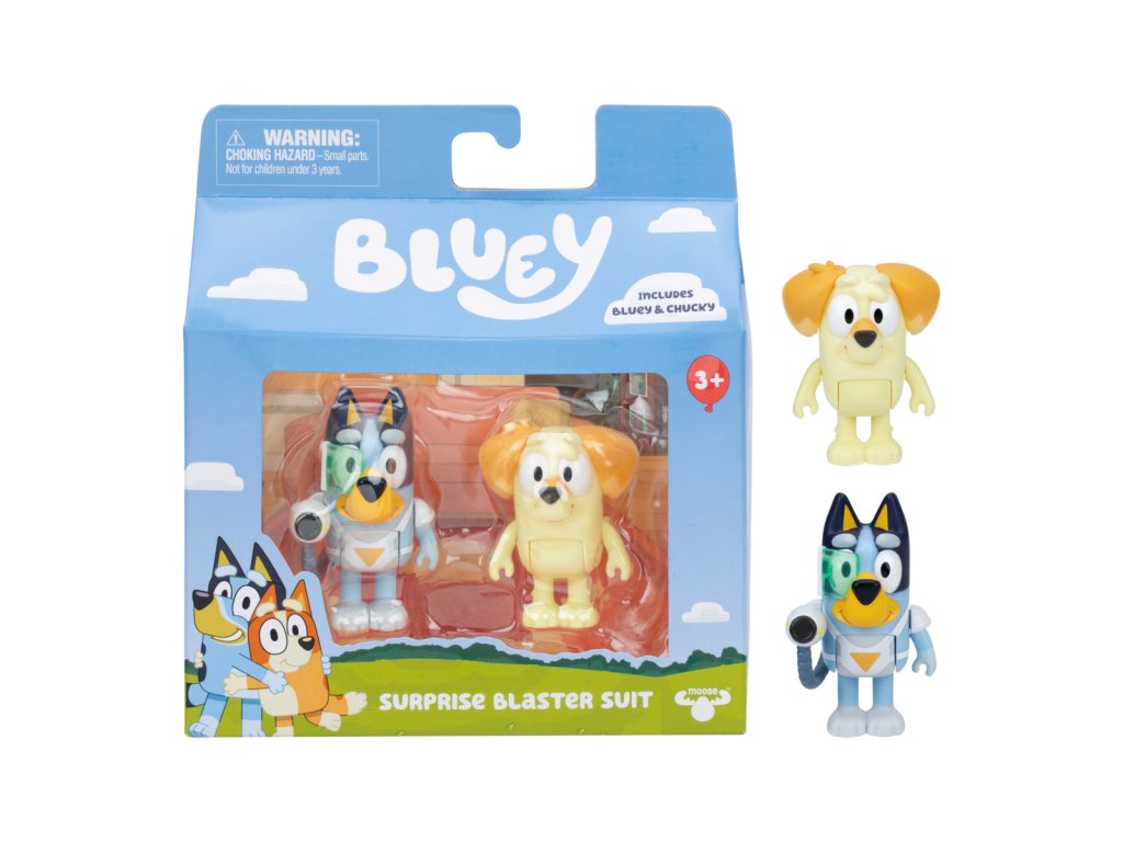 Přiveď si domů Bluey a její přátele s novým 2-figurovým setem „Blaster”! Stejně jako v epizodě Bluey „Překvapení“ se Bluey a její soused Chucky chtějí bavit! Figurky mají ideální velikost pro ruce předškoláků, kteří si mohou přehrávat dobrodružství Bluey nebo vymýšlet vlastní příběhy. Obsah balení: 2 x Figurky. Nevyžaduje baterie, věk 3+