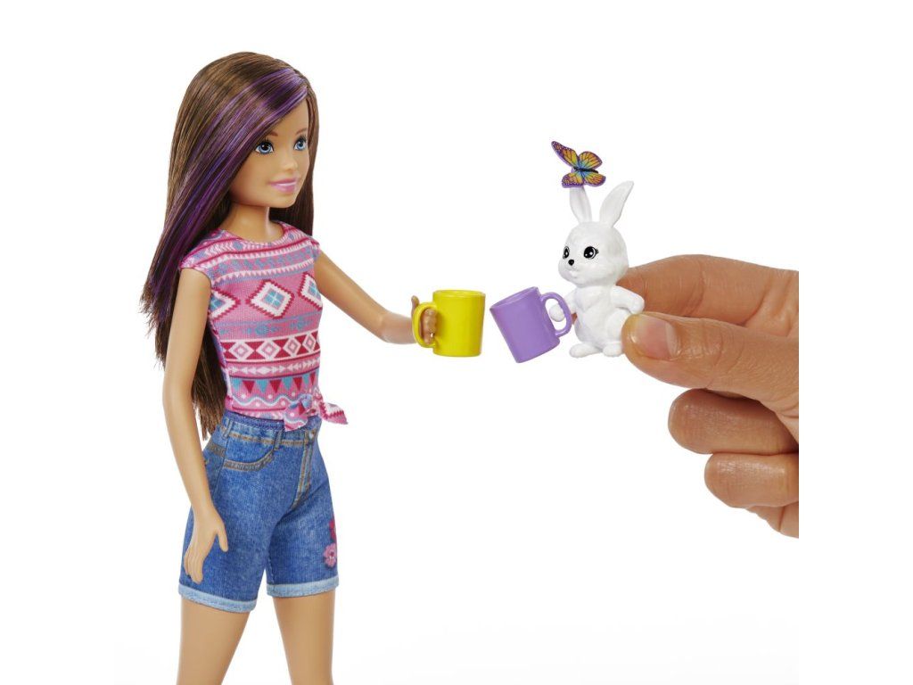 S herním setem Kempující sestra se zvířátkem si užijete dokonalé kempování inspirované zbrusu novou řadou Barbie®! Na výběr jsou panenka Skipper™ nebo Stacie™! Tyto sestry, mají překrásné kempinkové oblečení a umí rozjet venkovní zábavu na plné obrátky. Vyberte si panenku Skipper™ s rozkošným kamarádem králíčkem a táborákem nebo panenku Stacie™ se sladkým štěňátkem, stanem pro domácí mazlíčky a přepravkou na záda. Obě panenky obsahují doplňky pro vyprávění příběhů a arch samolepek pro zábavné přizpůsobení.