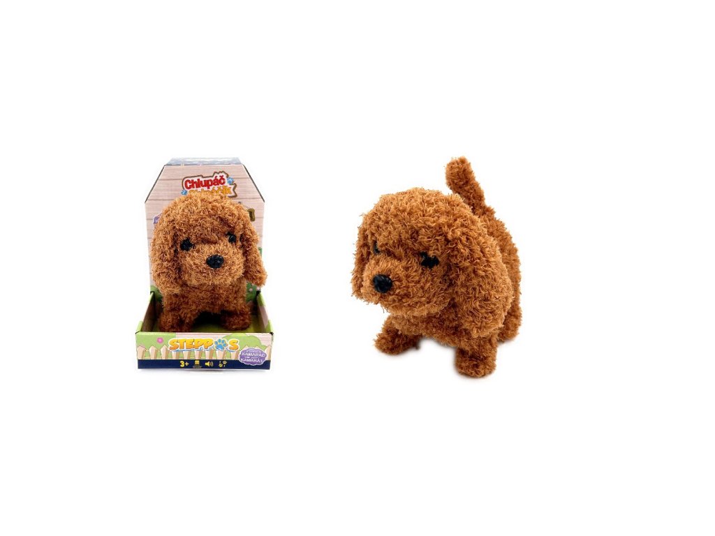 Hnědý interaktivní pejsek STEPPOS je připraven stát se nejlepším kamarádem vašeho dítěte. Díky tmavší barvě vypadá jako opravdový psí kluk, který právě přiběhl ze zahrady a nemůže se dočkat, až si s vámi začne hrát.