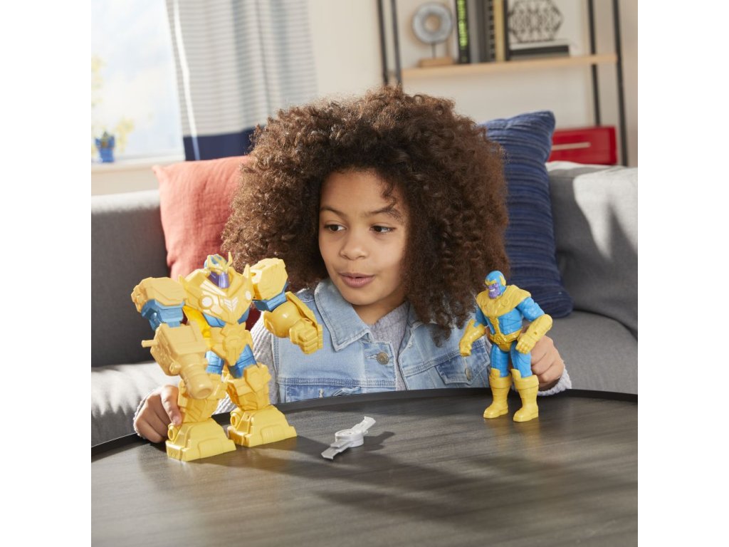 Akční figurka Avengers Thanose od Marvelu vysoká přibližně 18 cm s odnímatelným Mech Strike brněním je určená pro děti od 4 let. Do odnímatelného brnění se figurka vloží, zavře a může vyrazit do akce! Thanos má na sobě tu nejnovější bojovou Mech Strike zbroj a její kloubové paže umožňují zaujímat ty nejlepší bojové pózy. Doplněno o dvousečnou čepelovou zbraň s kterou se dá otáčet.