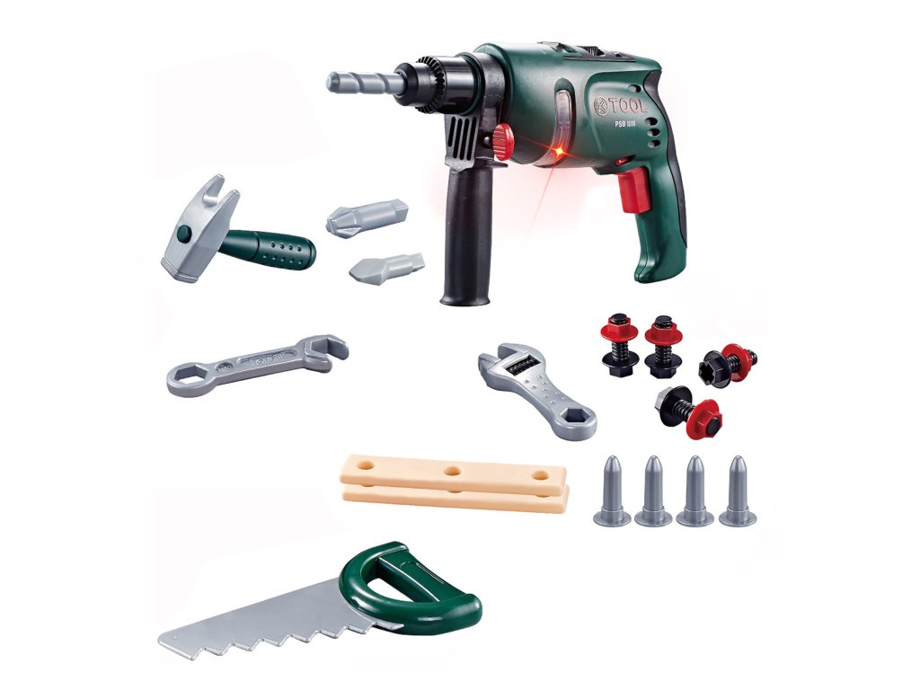 Dětské nářadí s aku vrtačkou a dalším příslušenstvím. Tato sada obsahuje vše potřebné pro malé kutily. Kromě aku vrtačky, která funguje na baterie (2 x 1,5V AA baterie, nejsou součástí balení), zde najdeš třeba kladívko, ruční pilu, klíče a další doplňky.