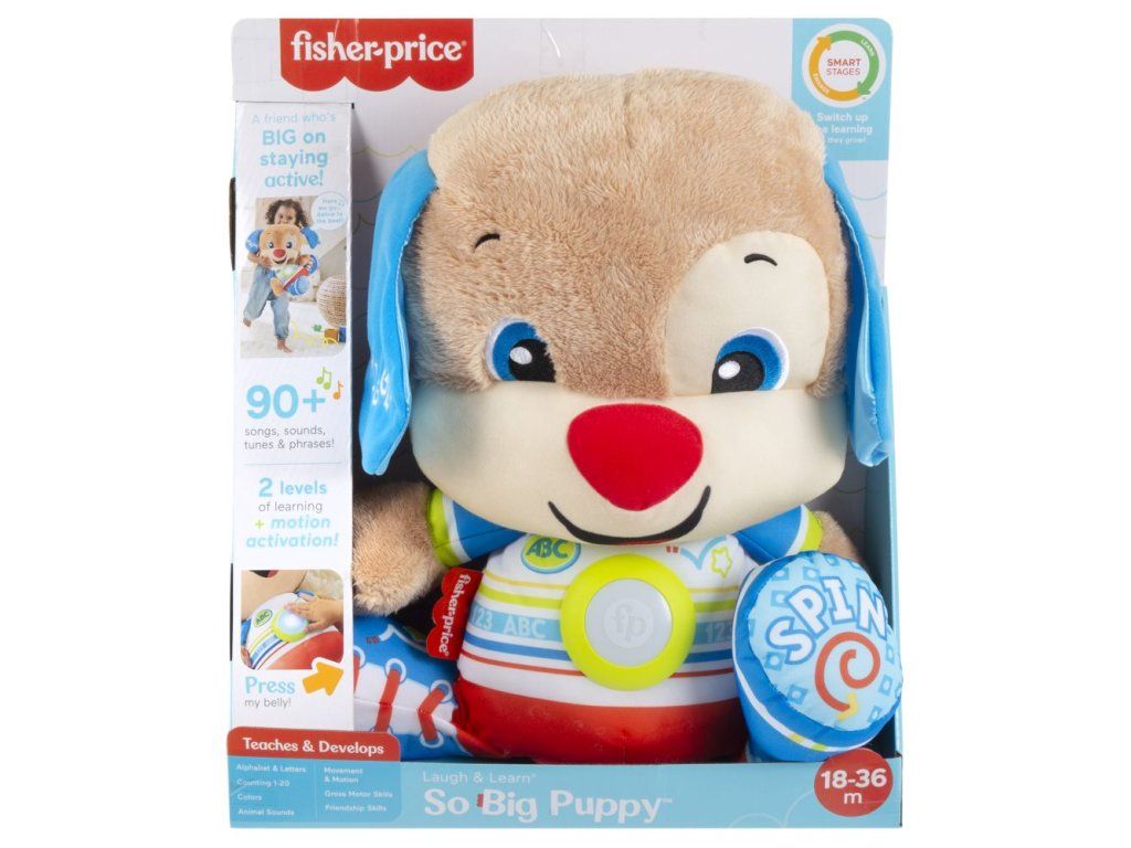 Velký pejsek z řady Směj se a Poznávej! od Fisher-Price® bude první nejlepší kamarád vašeho děťátka! Pejsek reaguje na pohyb vašeho batolete a spustí písničky, zvuky a fráze, které vašeho nadšeného drobečka zaručeně povzbudí k pohybu. Dvě úrovně učení Smart Stages® mu při hře jednoduše představí počítání, abecedu, zvuky zvířat a ještě mnohem víc. Celá tato aktivní hra pomáhá posilovat hrubou motoriku vašeho batole při nácviku poslouchání a následování pokynů.